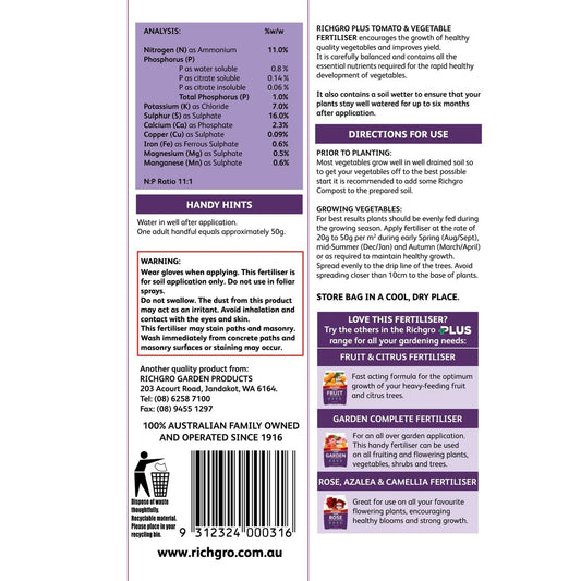 Richgro plus tomato and vegetable fertiliser - 2.5kg granular - high npk