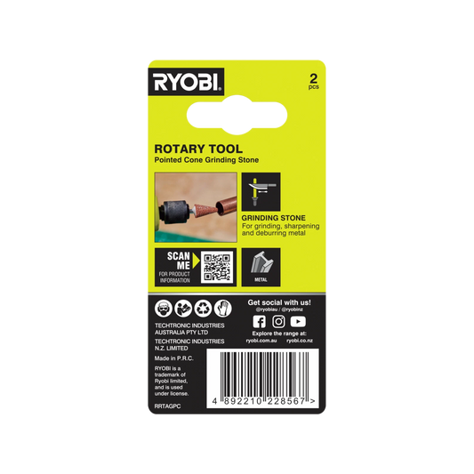 Ryobi 7.9mm Rotary Grinding Stone, Pointed-Cone, Aluminium Oxide, 3.2mm Shank, 35,000 RPM