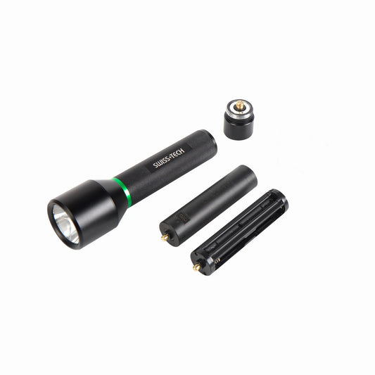 SWISS+TECH 1000lm Dual Power Rechargeable Flashlight, 350m Beam, USB-C, IPX4, Aluminium