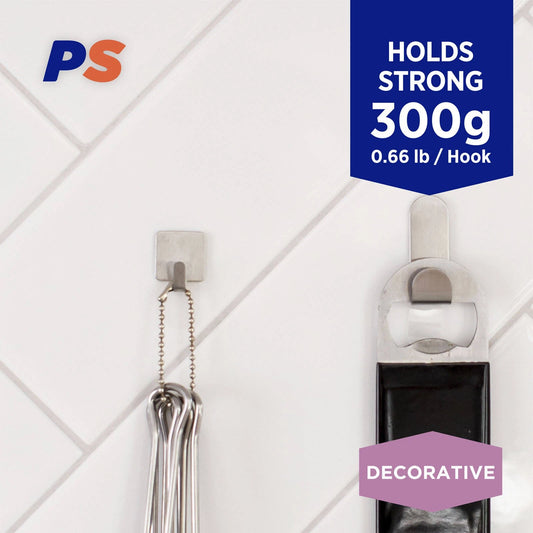 Permastik small steel square hooks 9 pack - strong hold, no damage, easy to use