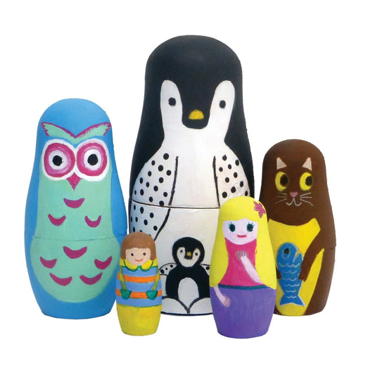 Boyle Nesting Dolls Craft Paint Kit - 5 Pack, Includes Paints & Brush, Durable Wood