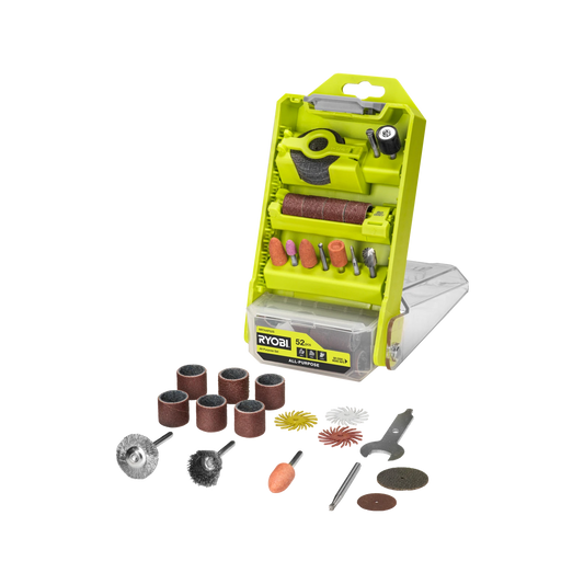 Ryobi 52-Piece Rotary Tool Accessory Set for Sanding, Cutting, Polishing, Grinding, Engraving