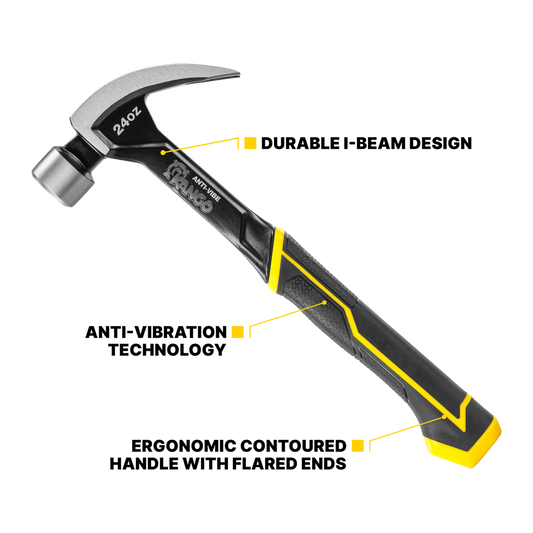 Kango 20oz Anti-Vibe Steel Claw Hammer with Magnetic Nail-Starter and Curved Claw