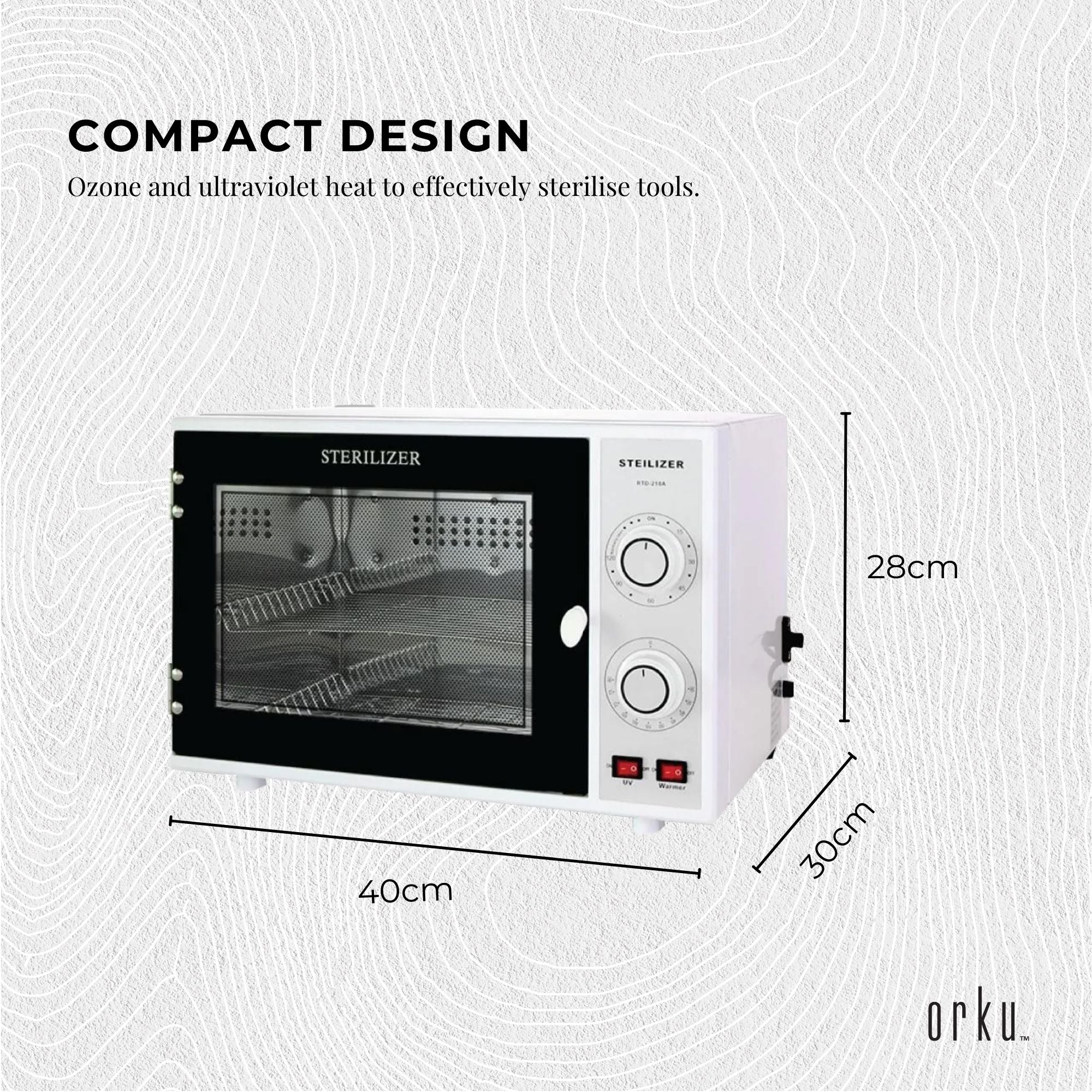 This machine uses ultraviolet light and ozone to effectively cleanse and sanitize, destroying germs and microbes that may cause contamination. A powerful and natural purifier, ozone leaves no chemical residue, hence making it ideal and effective in sterilizing tools.