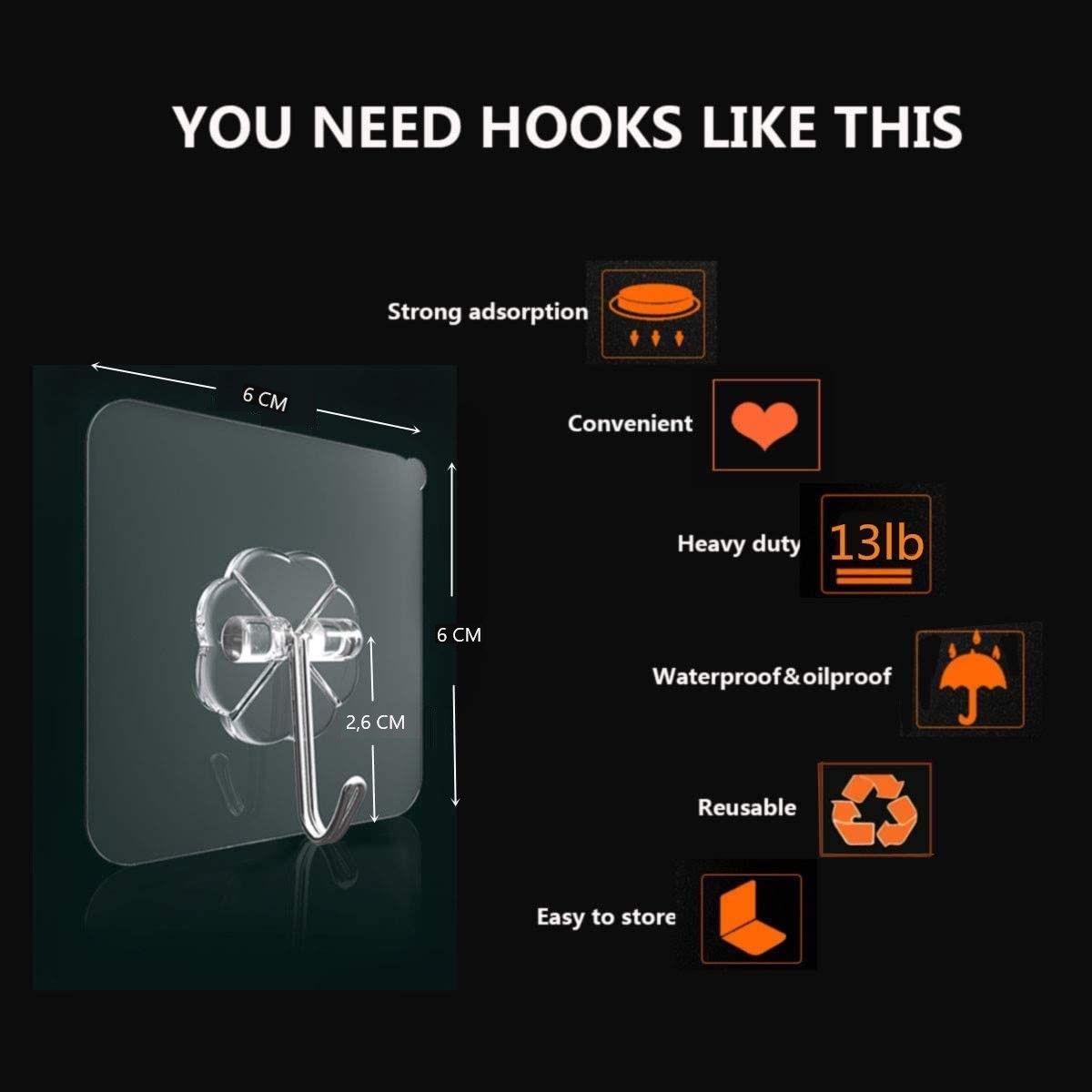 24 Packs Heavy Duty Adhesive Hooks Kitchen Wall Hooks