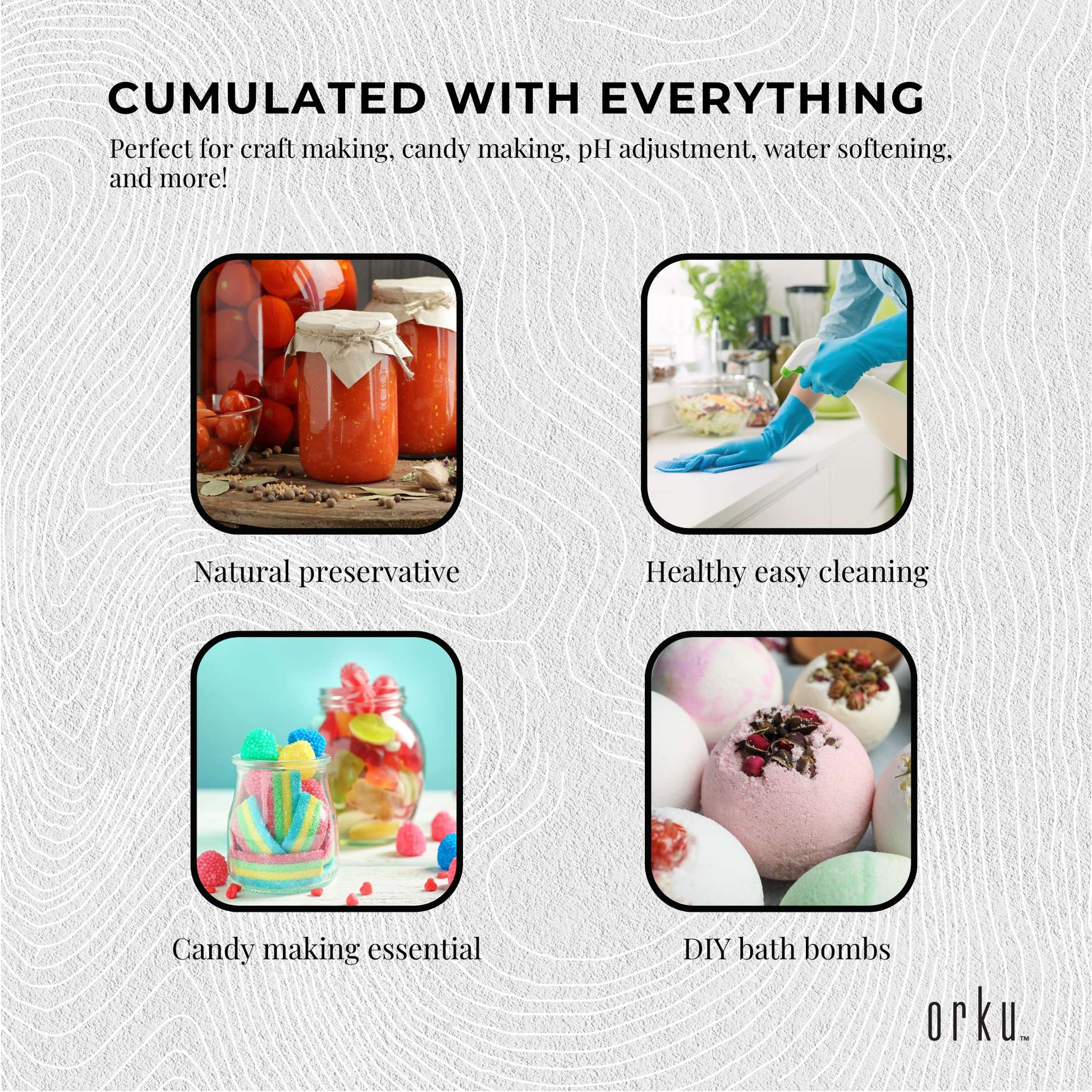Citric Acid is used predominantly in cooking and manufacturing as a souring agent.Citric acid powder is also used as a preservative agent.