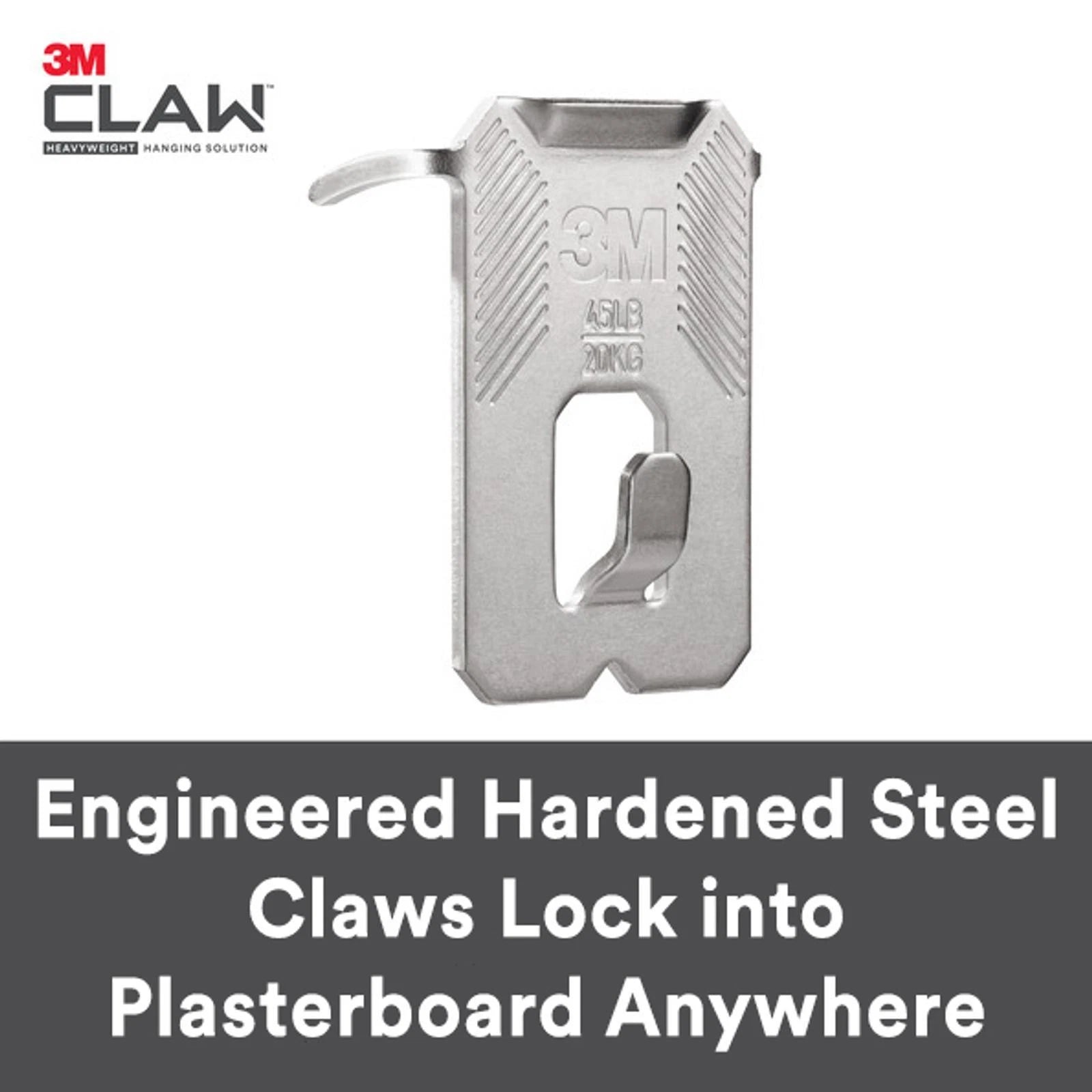 Introducing the new 3M Claw plasterboard Picture Hanger—your trusted solution for heavy-duty hanging projects. Engineered with hardened steel claws, it securely locks into plasterboard, supporting weights up to 30kg. Simply push, hang, and enjoy a reliable, permanent hold without the need for studs or additional tools.