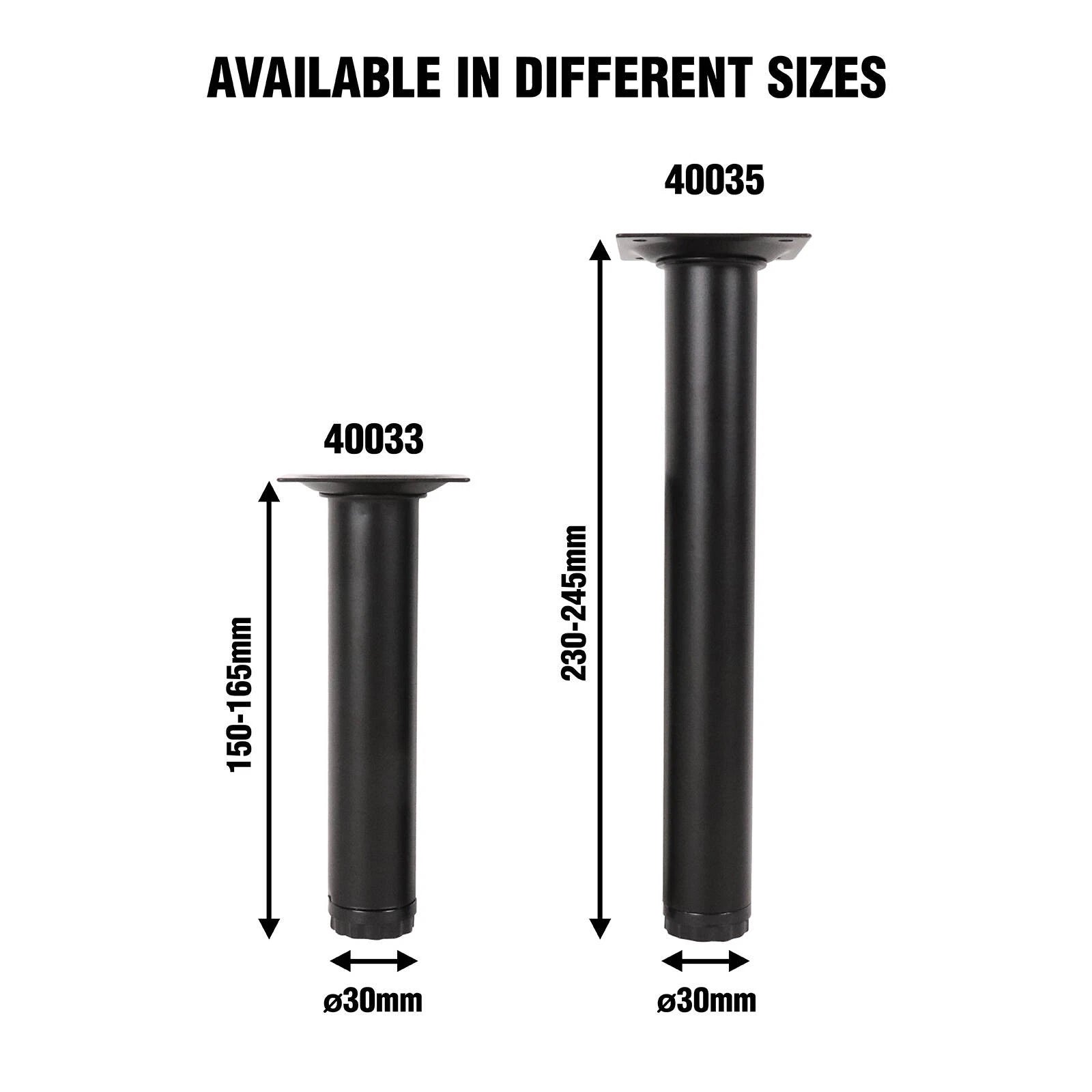 Includes 1 x Adoored 30 x 150mm Black Round Table Leg.