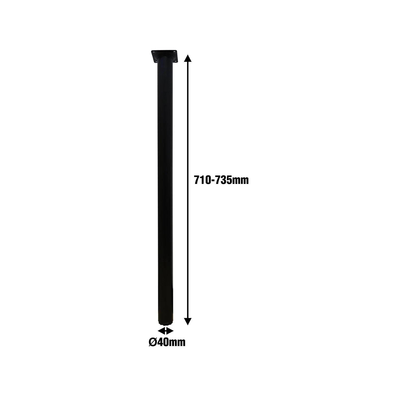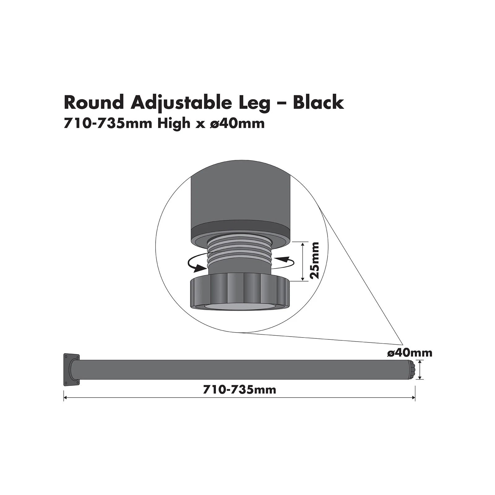 Includes 1 x Adoored 40 x 710mm Black Metal Round Furniture Leg.