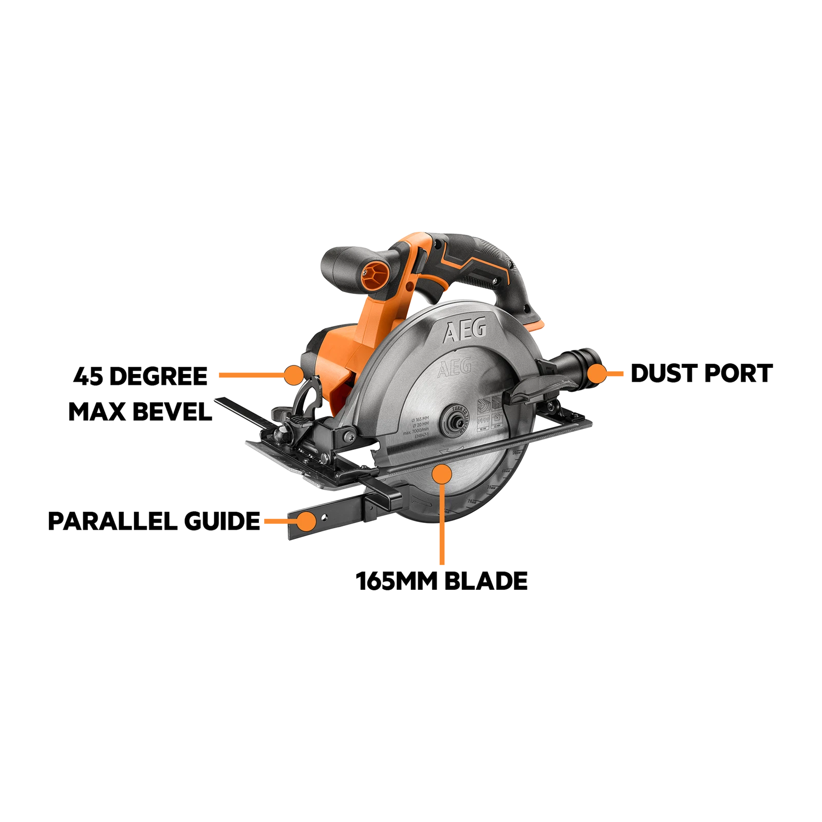 Upgrade your toolkit with the AEG 18V 165mm Circular Saw, designed for precise, straight cuts with powerful performance. This skin-only model offers exceptional control and convenience, making it an essential tool for professional and DIY projects alike.