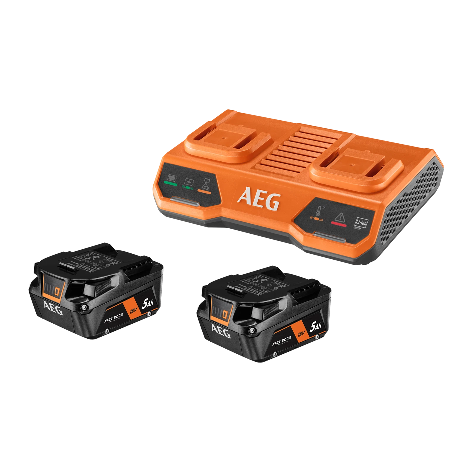 Enhance your power tool performance with the AEG 18V 5.0Ah Dual Port Charger and Battery Twin Pack. Designed for efficiency and durability, this pack provides longer runtimes, faster charging, and reliable operation for your FUSION tools. Perfect for demanding worksite conditions, it ensures your tools stay powered up when you need them most.