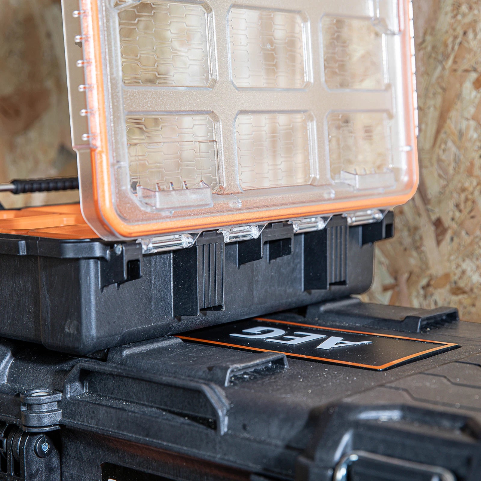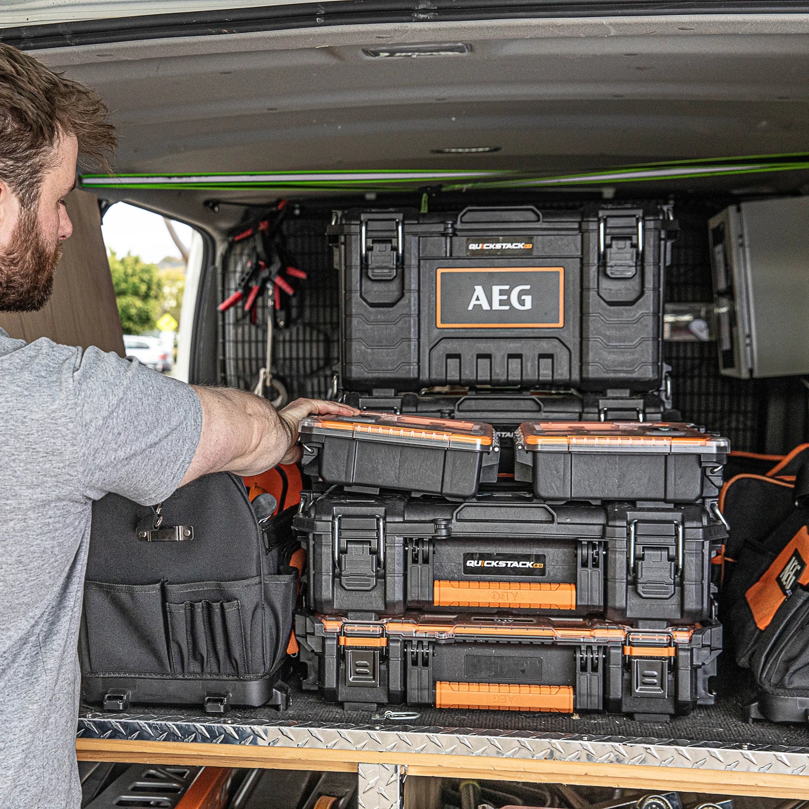 Upgrade your workshop or jobsite organization with the AEG Quickstack 2.0 Medium Toolbox. Designed for durability and flexibility, this modular toolbox offers secure stacking, water and dust resistance, and convenient mounting options. Perfect for professionals and DIY enthusiasts alike, it ensures your tools are protected and easily accessible.