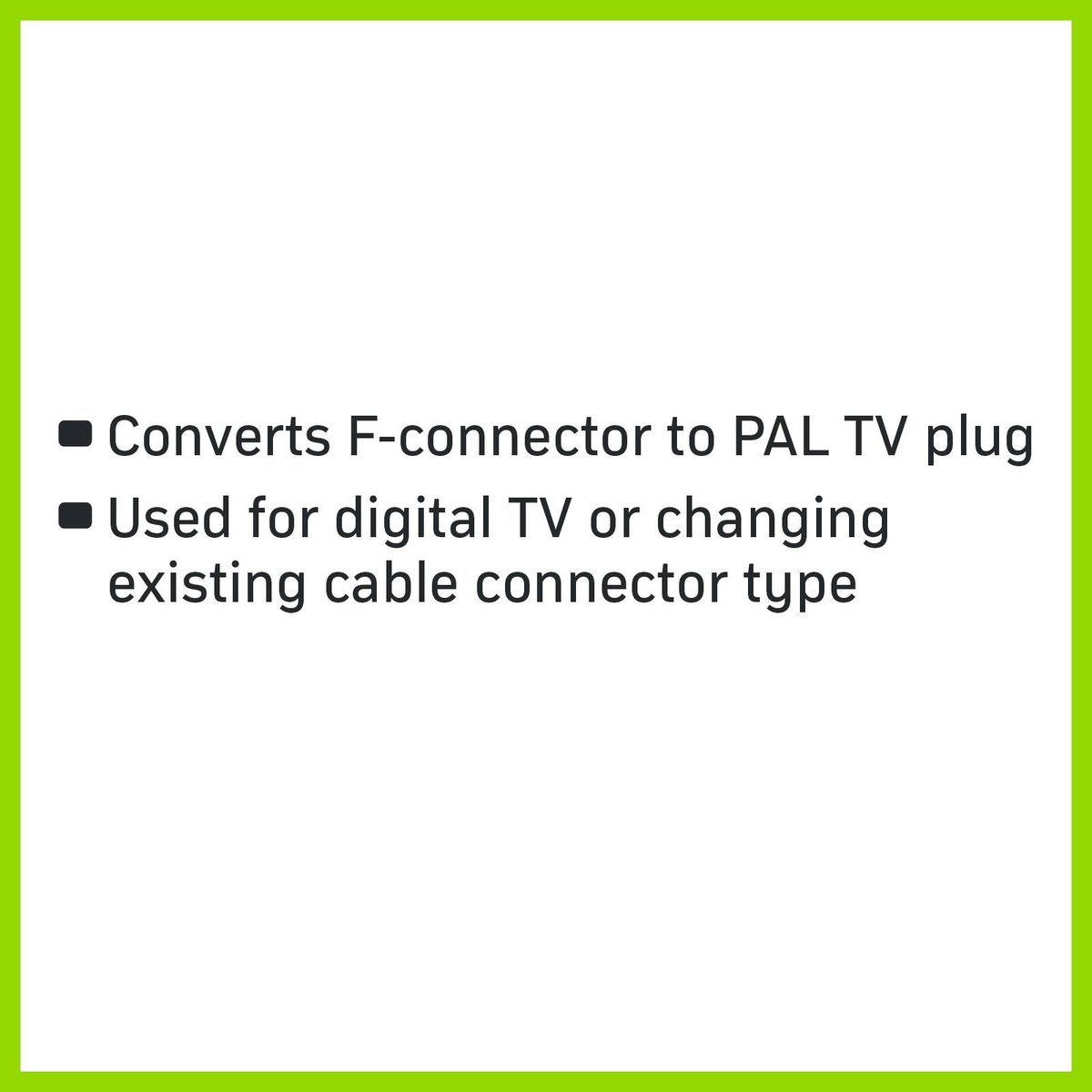 The Antsig F Socket to Pal Plug is a reliable coaxial cable joiner for your home entertainment needs.