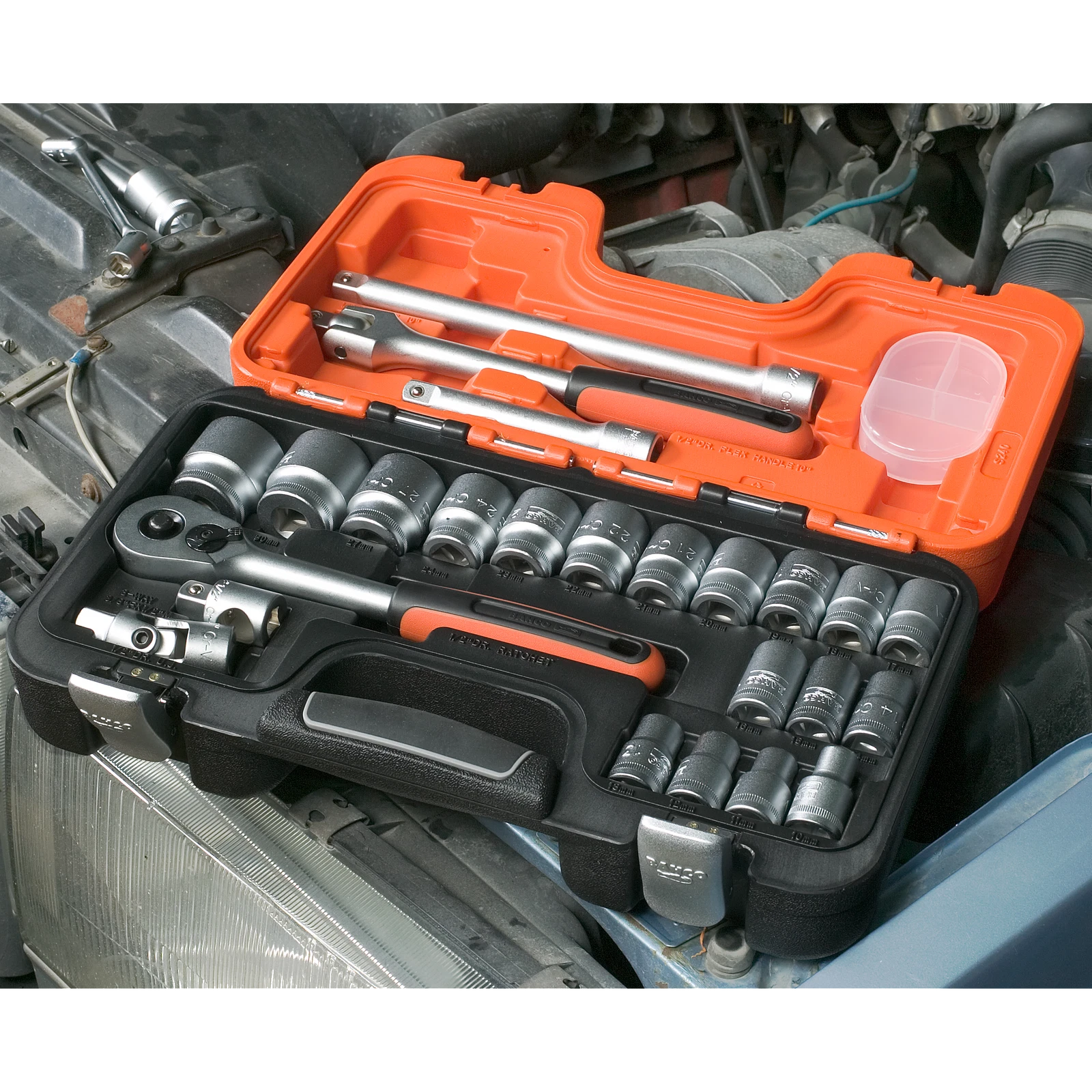 This socket set meets ISO 1174 and DIN 3120 standards, ensuring quality and compatibility with a wide range of fasteners.
