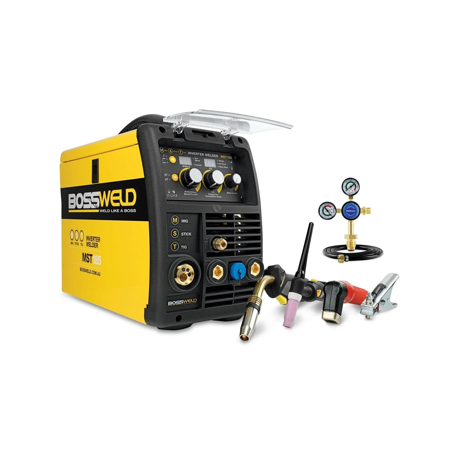 Discover versatile welding with the Bossweld MST185 Plus, a lightweight and powerful inverter welder designed for professional and DIY use. Perfect for a range of welding applications, this machine combines advanced IGBT technology with user-friendly features to deliver high-quality results across MIG, Stick, and TIG processes.