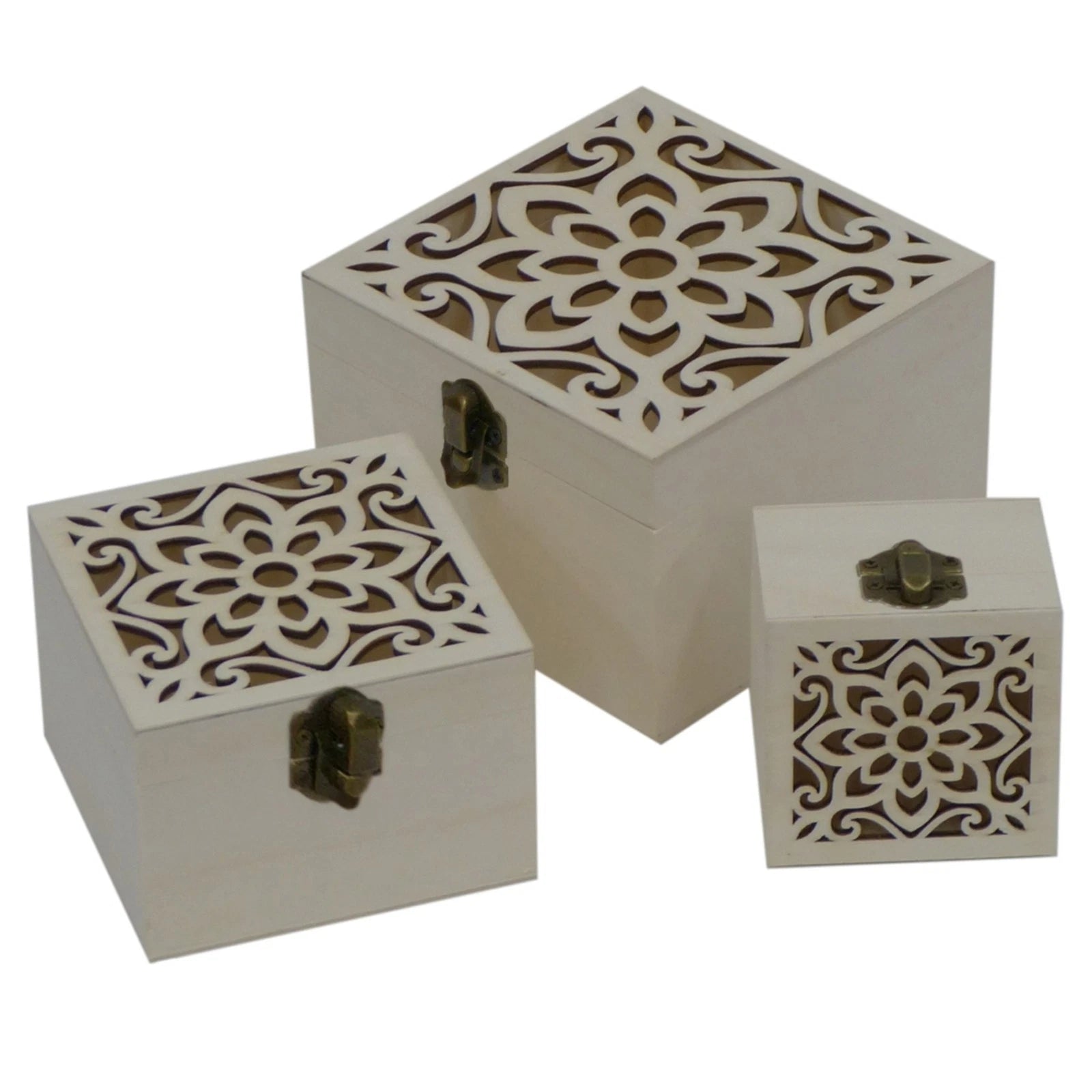 Discover the perfect blend of craftsmanship and creativity with the Boyle Plywood Square Boxes. These beautifully crafted boxes feature intricate laser-cut flower designs, making them ideal for home decor, office organization, or engaging craft projects. Suitable for all ages, from kids to adults, these boxes are a versatile addition to your collection.