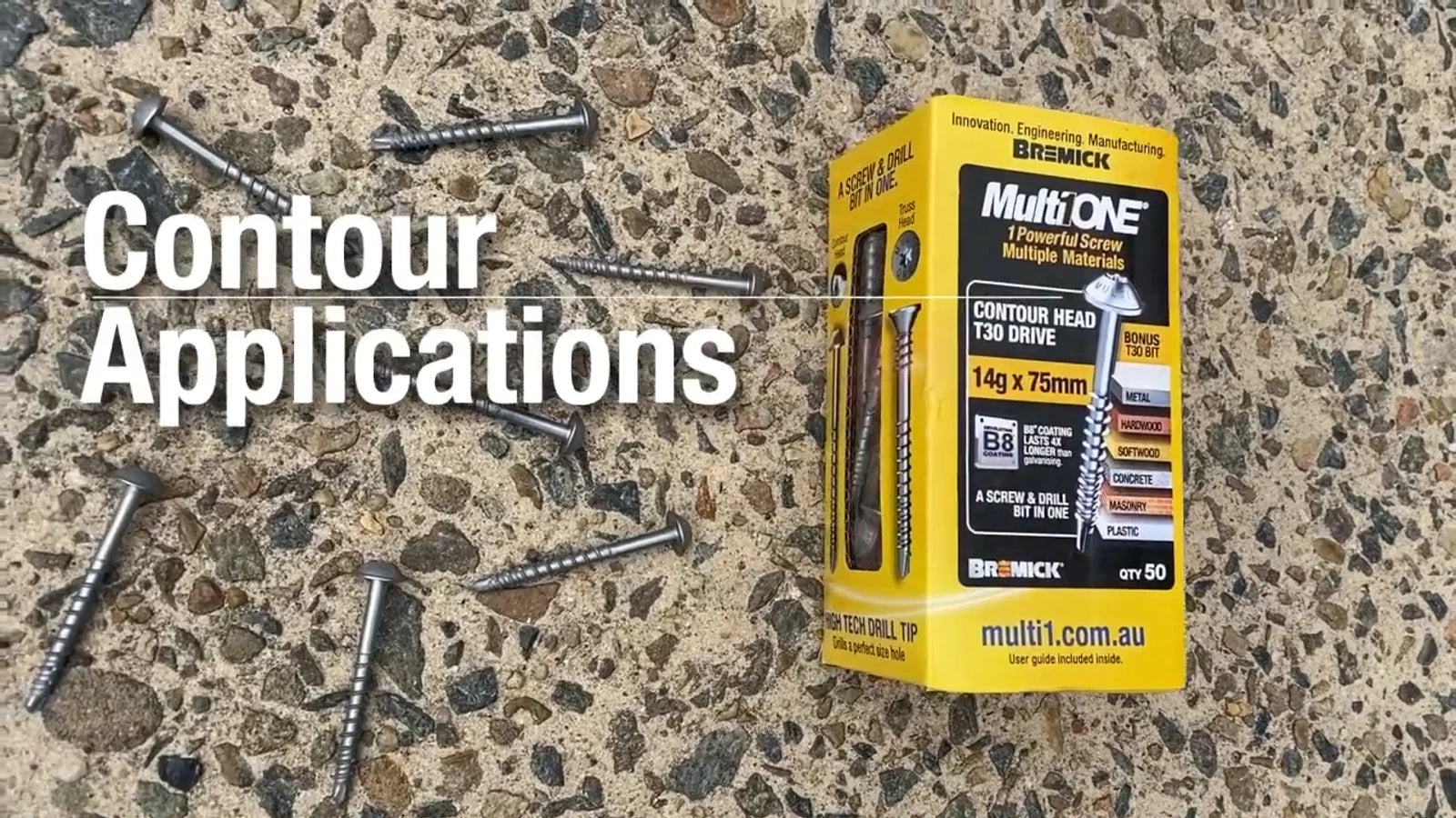Includes 1 x Bremick MultiONE 14g x 75mm B8 Contour Head Screw – 50 Pack