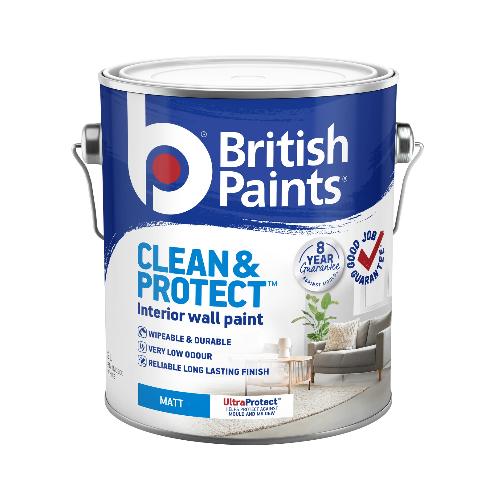 Includes 1 x British Paints White Matt Clean and Protect Interior Paint - 2L