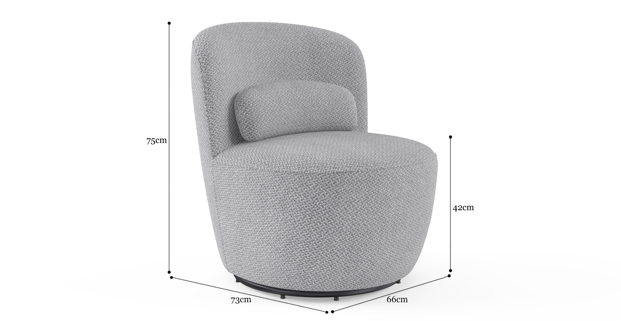 With its softly rounded form, the Ada Swivel Chair invites you to sink into your favourite book and feel profound calmness. The versatile shape means you can fit it into any scene with ease. Not to mention, it comes with a matching cute-as-a-button pillow, which is removable so you can style it any way you wish. Make this sculptural chair the hero of your living space or bedroom.