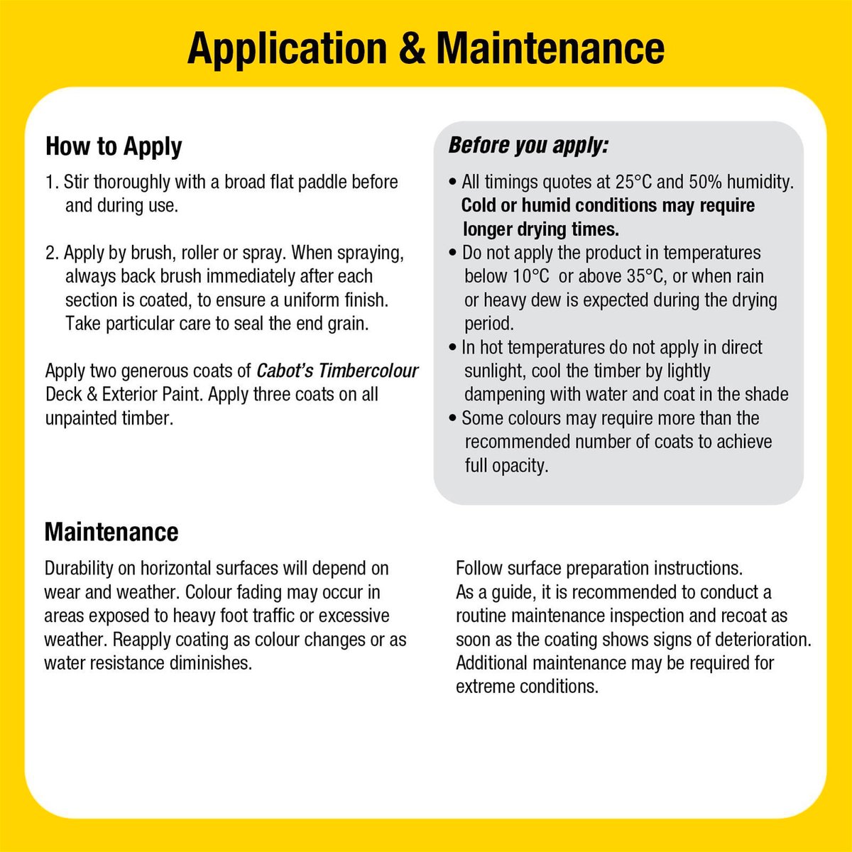 Cabot S Timbercolour Deck Paint 4L provides reliable protection for your timber surfaces.