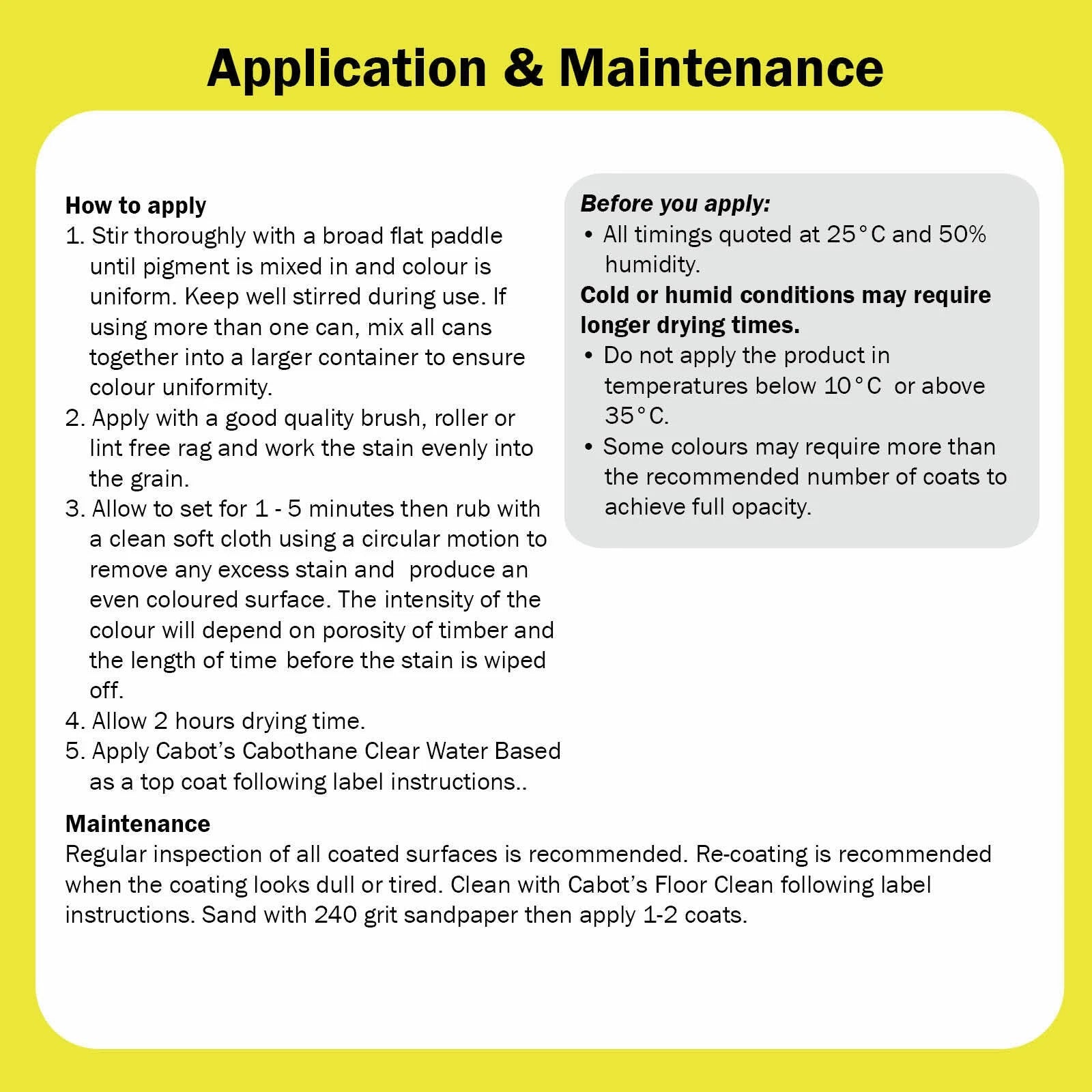 Includes 1 x 1L bottle of Cabot's Cedar Water Based Interior Stain.