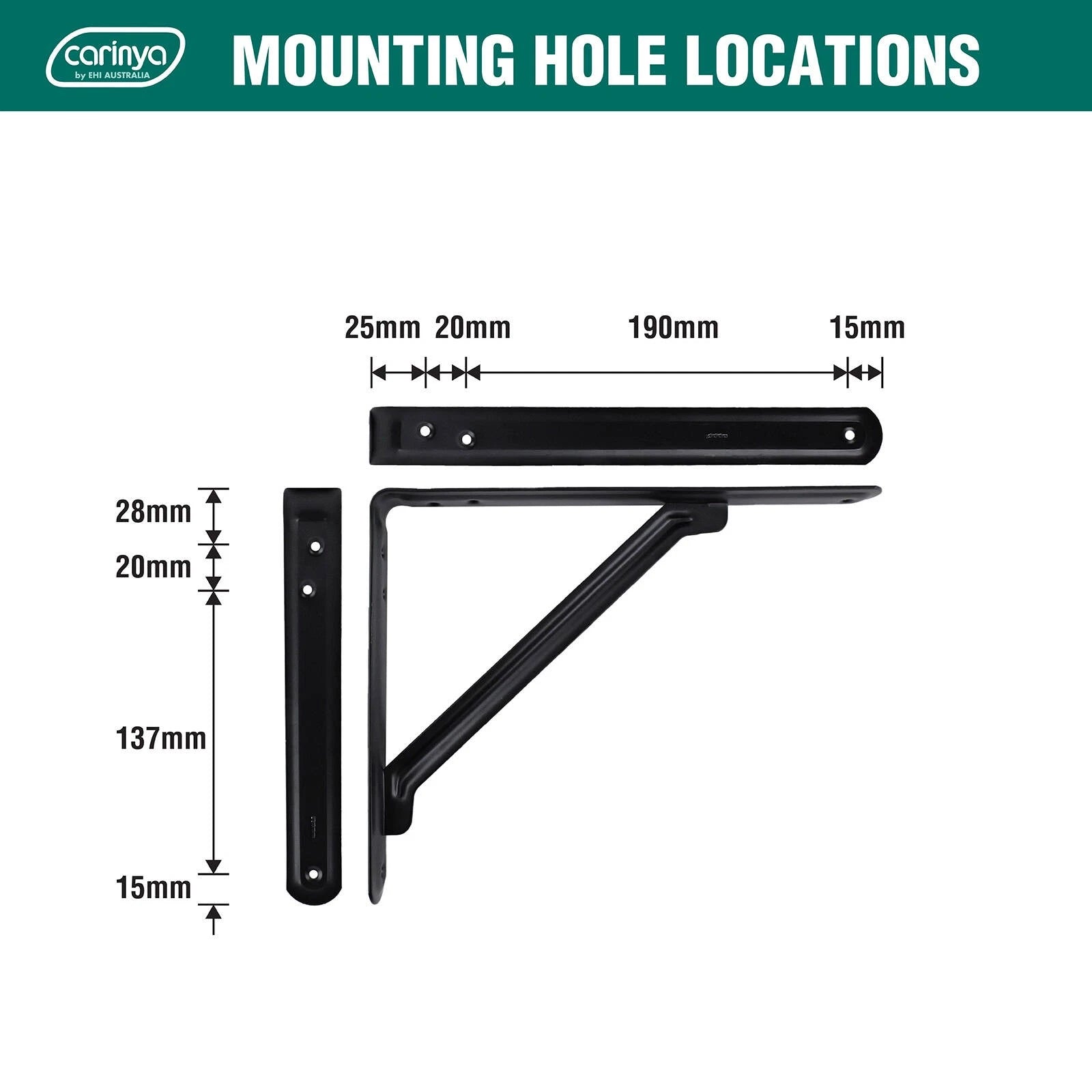 1 x Carinya 250 x 200mm Black Light Stayed Bracket