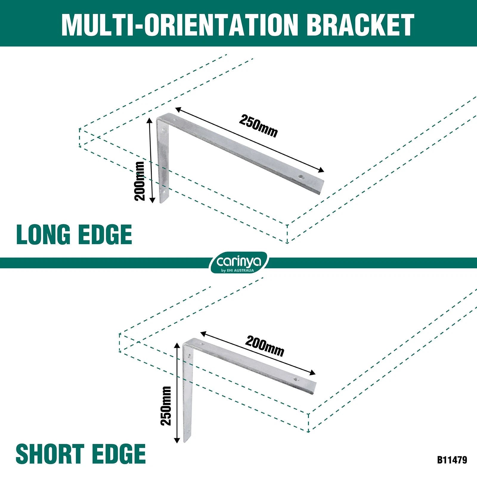 Includes 1 x Carinya 250 x 200mm Heavy Duty Hot Dipped Galvanised Angle Bracket.