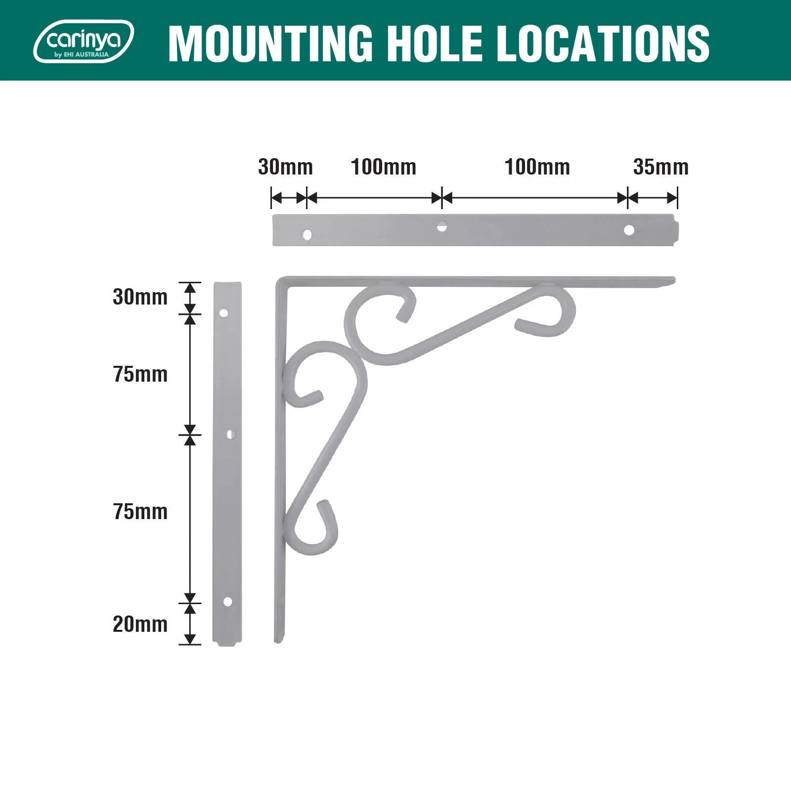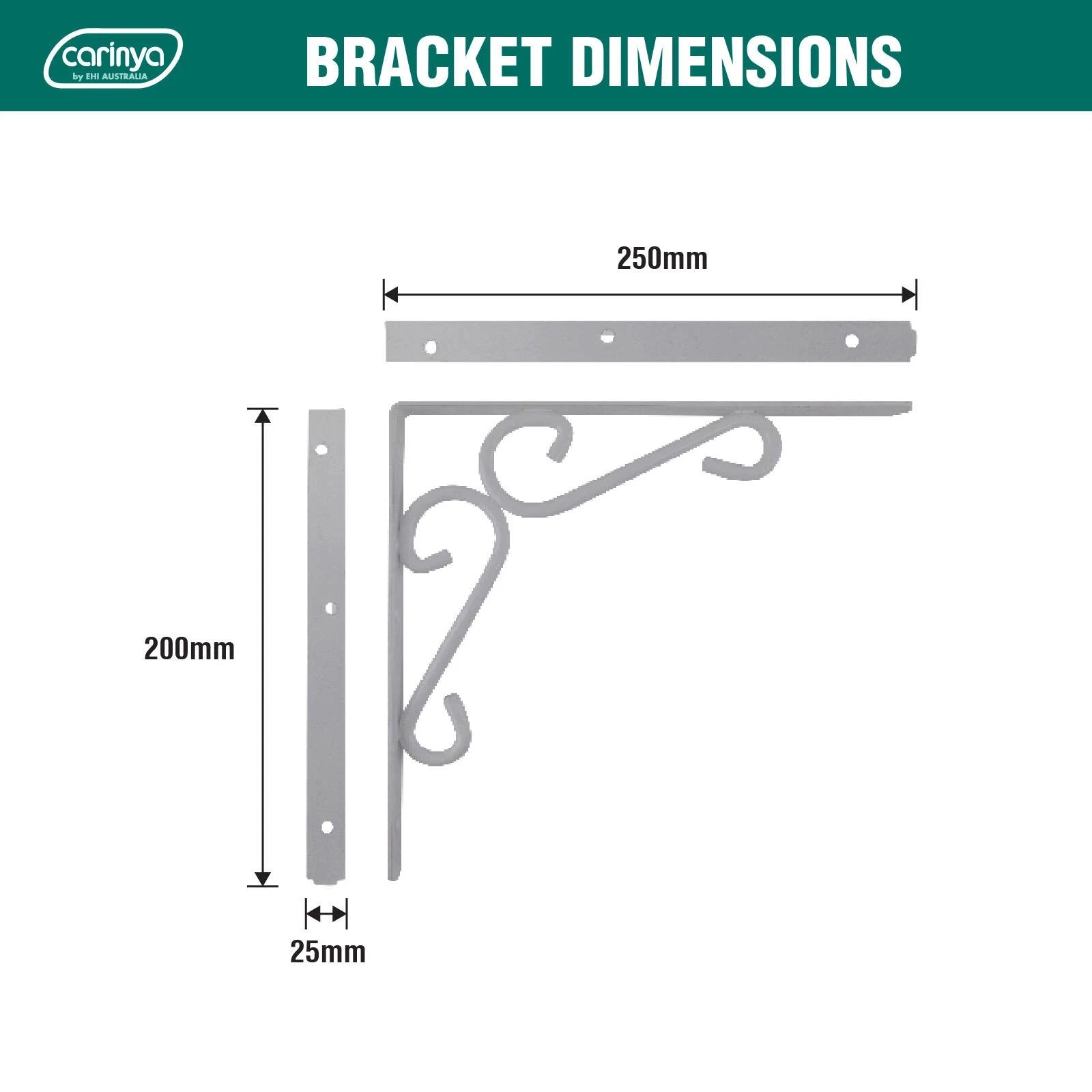 1 x Carinya 250 x 200mm White Heavy Duty Scroll Stayed Bracket