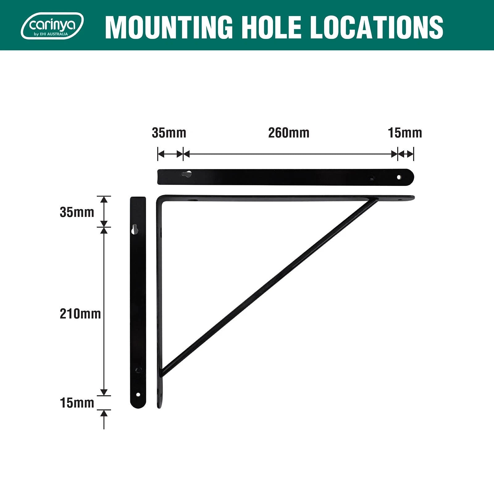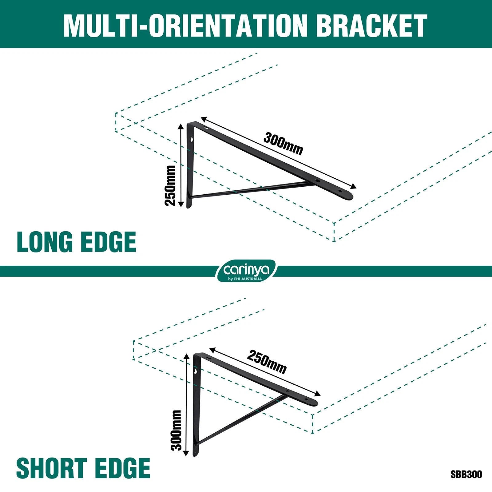 Includes 1 x Carinya 300 x 250mm Black Heavy Duty Studio Stayed Bracket.