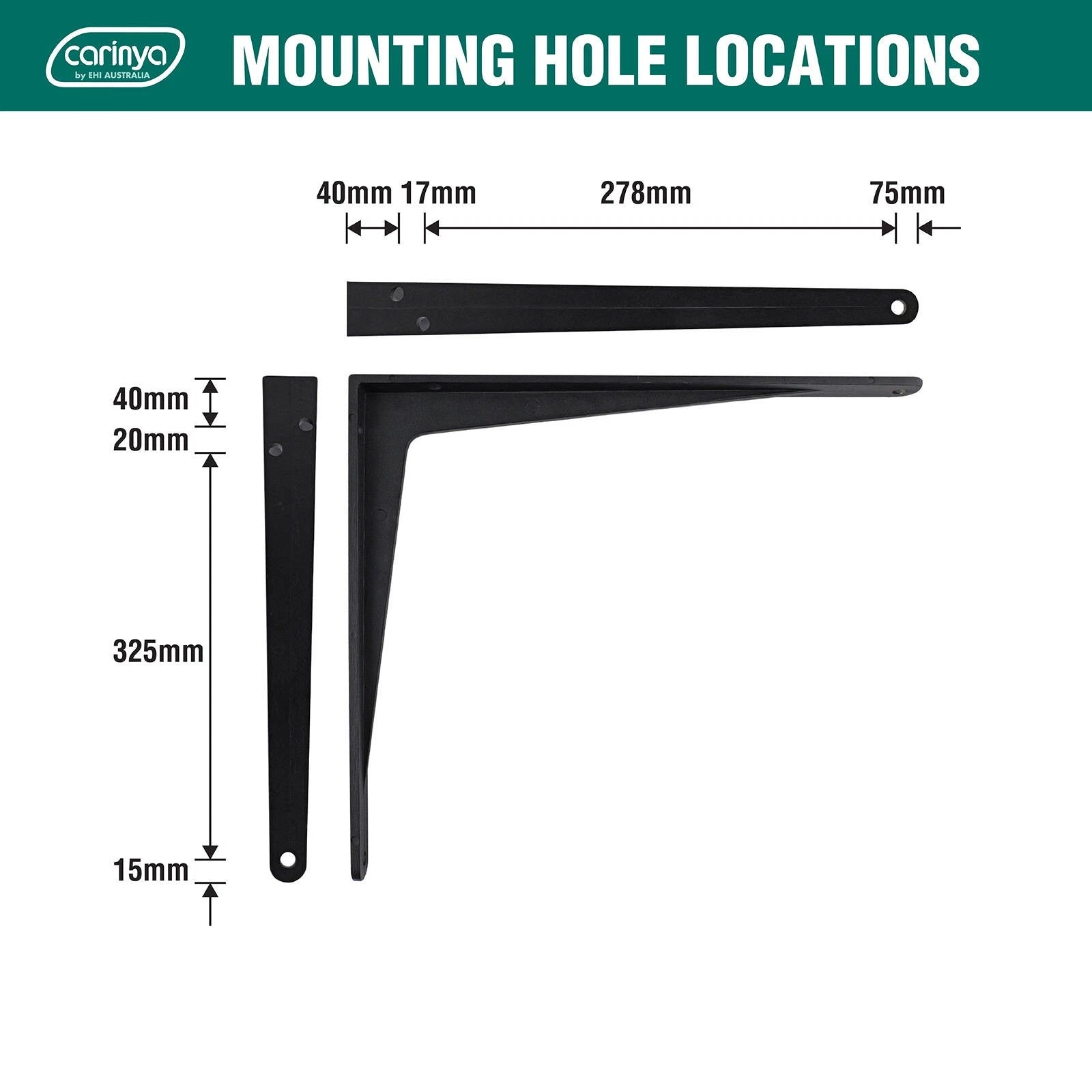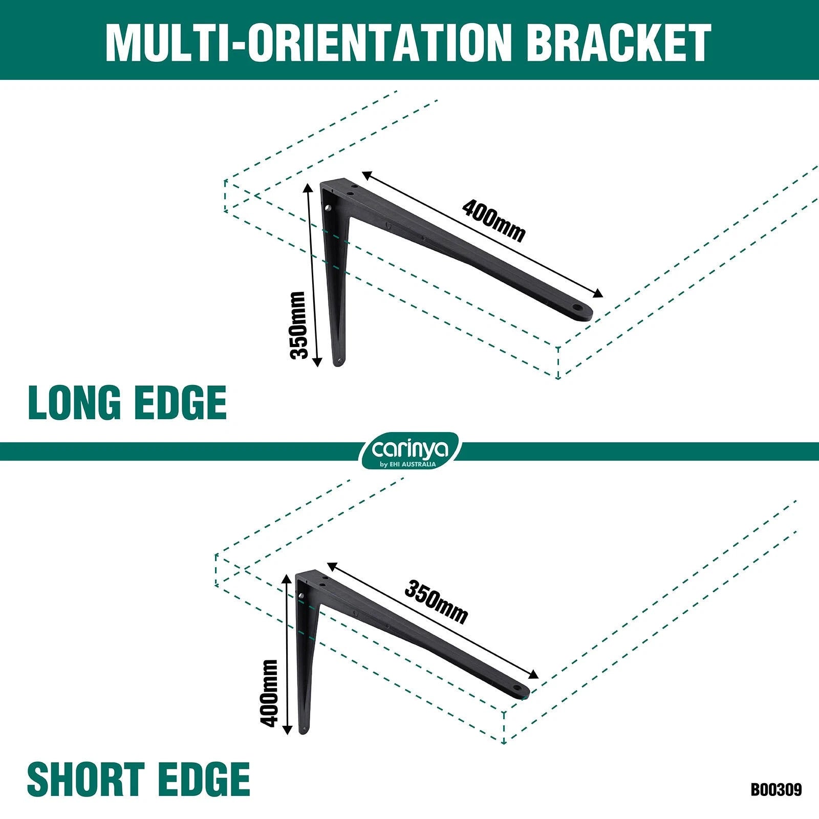 Includes 1 x Carinya 400 x 350mm Black Heavy Duty Cast Aluminium Angle Bracket.
