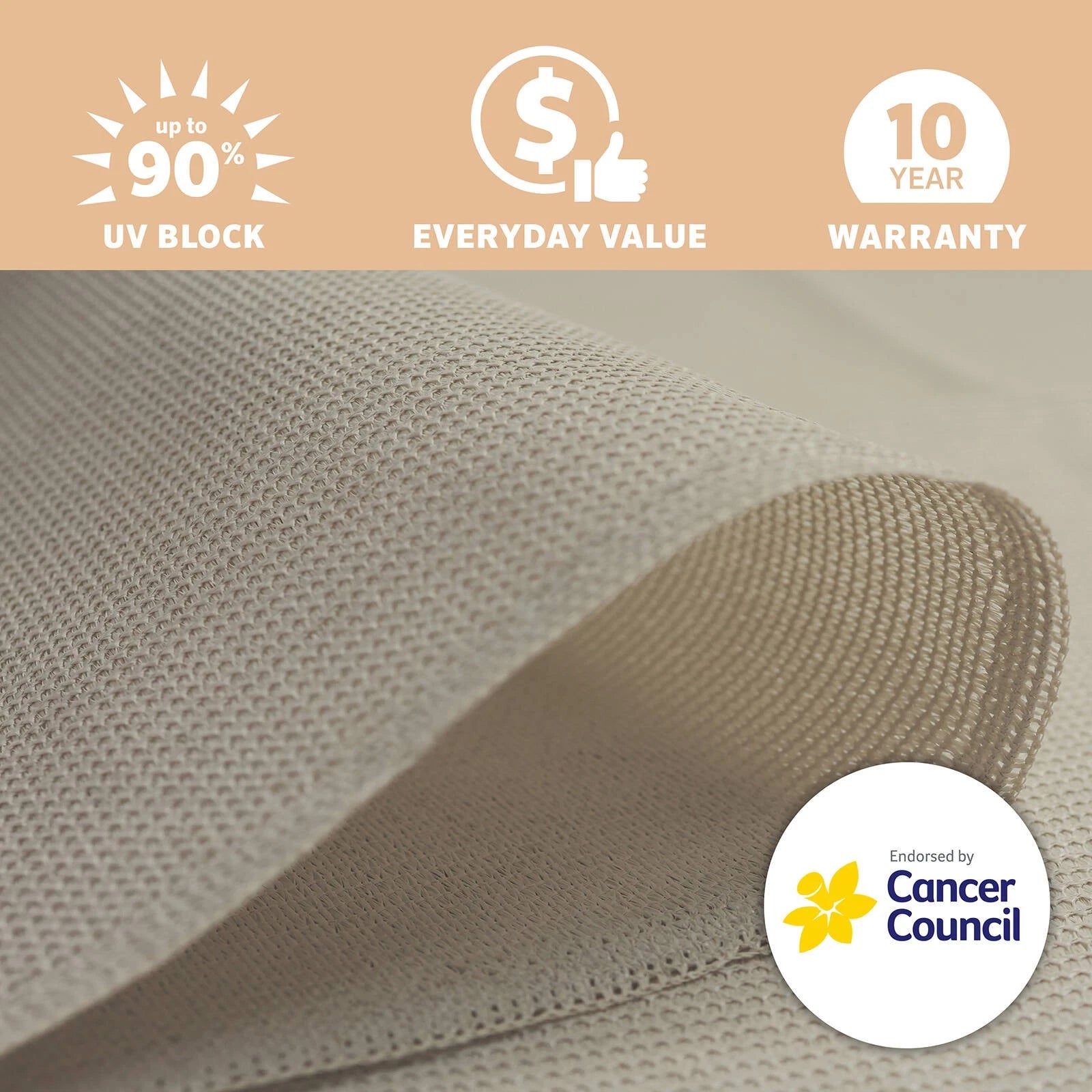Protect your outdoor space with the durable and stylish Coolaroo All Purpose Sun Protection Shade Cloth. Designed to block 90% of harmful UV rays, this shade cloth is perfect for creating a safe, shaded environment for your family and friends. Whether you're enhancing your gazebo, patio, or pergola, enjoy peace of mind with a product built for long-lasting performance and style.