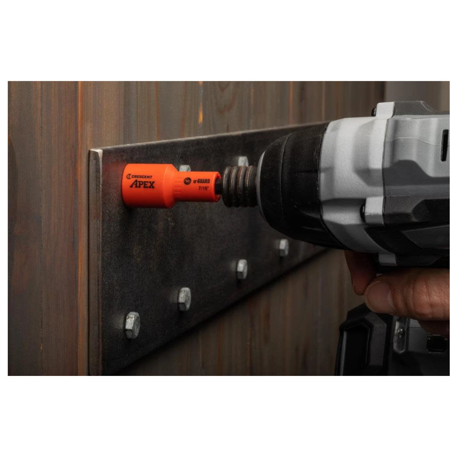 Enhance your fastening tasks with the Crescent APEX 7/16" u-GUARD Covered Magnetic Nutsetter. Designed for durability, safety, and precision, this tool is ideal for professional and DIY applications alike. Its innovative features ensure secure fastener retention and extended tool life, making it a reliable addition to your toolkit.