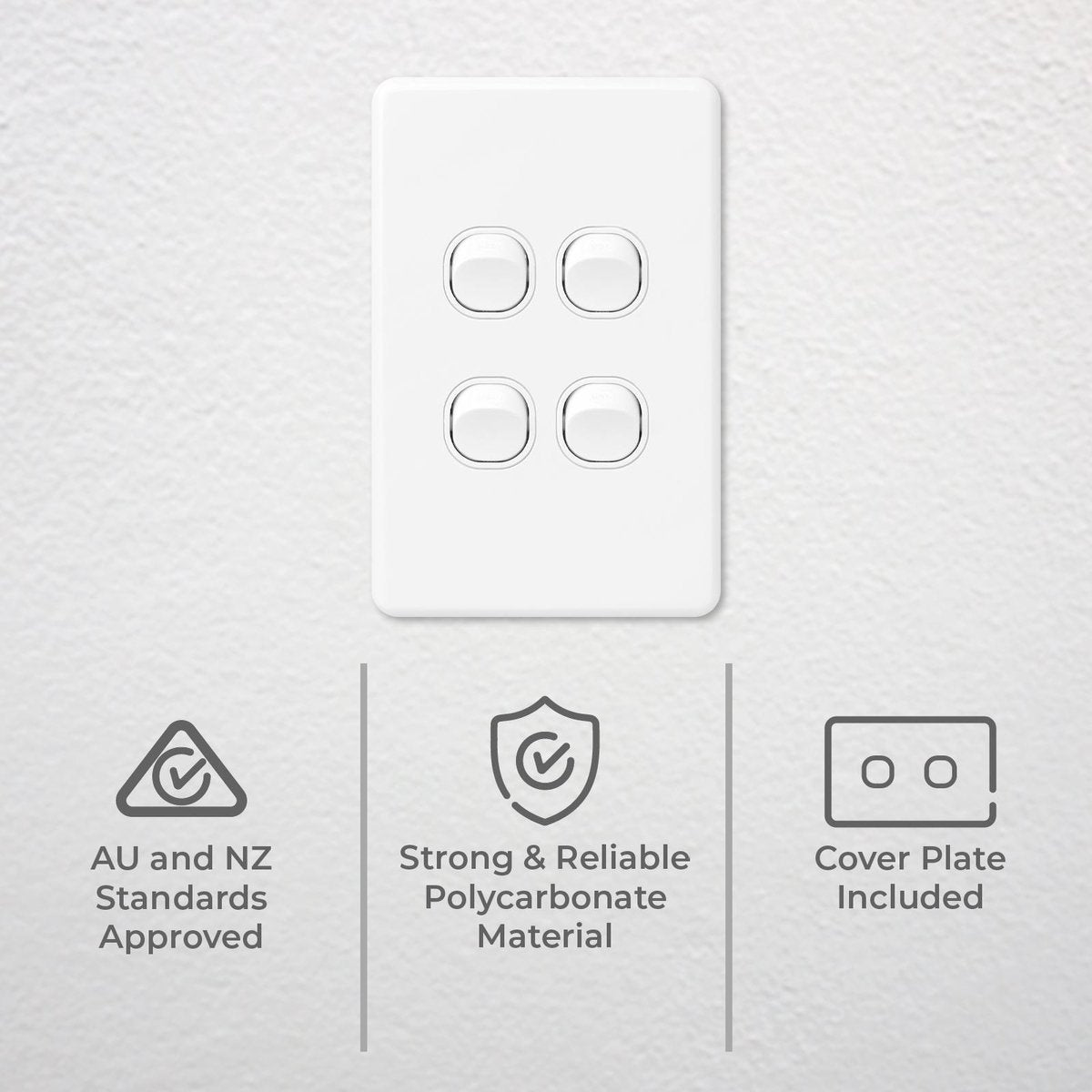 Deta X6 White Quad Vertical Switch - 4 Gang - Polycarbonate - Durable offers a sleek design and reliable performance for your electrical needs.