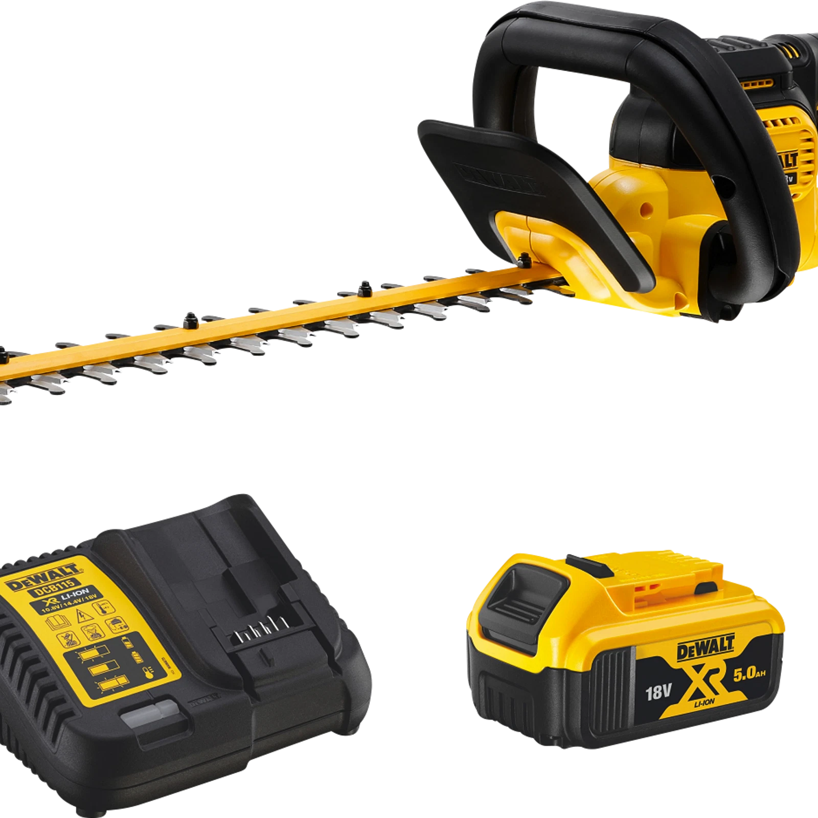 Experience effortless hedge trimming with the DeWALT 18V 5.0Ah XR 550mm Li-ion Cordless Brushless Hedge Trimmer Combo Kit. Designed for power, precision, and comfort, this versatile tool is perfect for maintaining your garden with ease and efficiency.