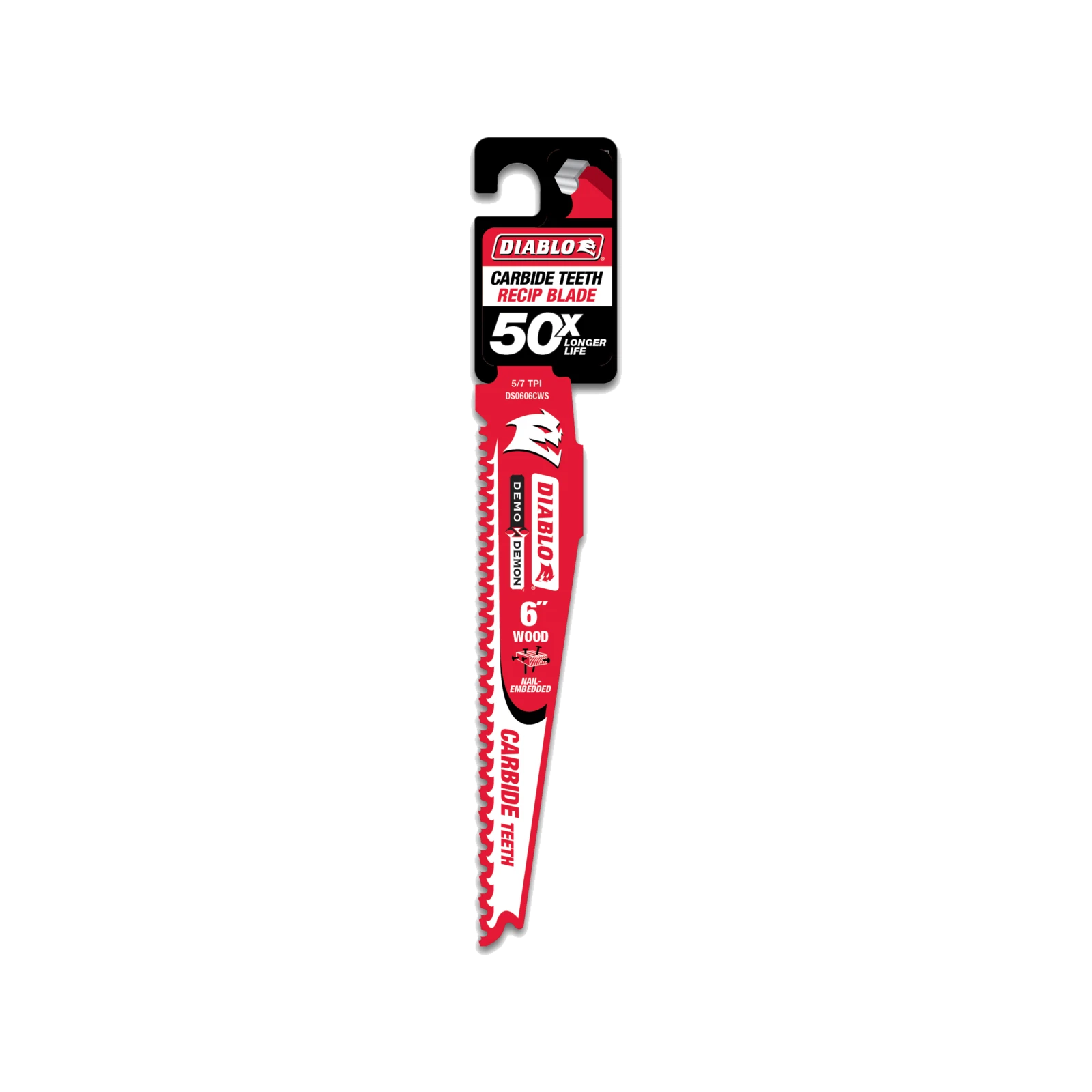 Experience superior cutting performance with the Diablo 6" Demo Demon Carbide Reciprocating Saw Blade, specially designed for nail-embedded wood. Built for durability and efficiency, this blade delivers faster cuts, longer life, and easier plunging, making it an essential tool for demanding demolition and remodeling projects.