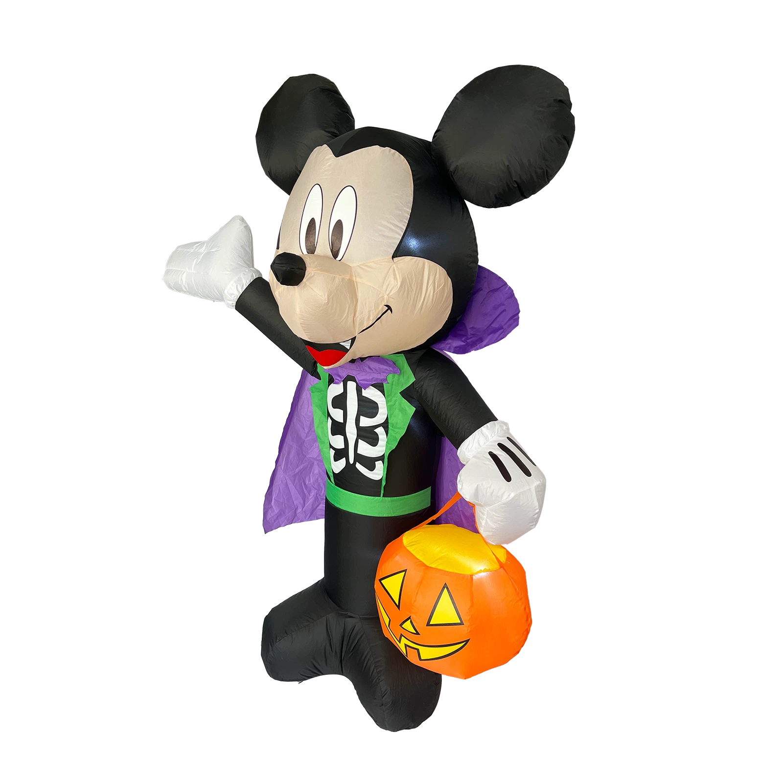 Add a magical touch to your Halloween decorations with this charming Disney Mickey Mouse inflatable. Standing at 1.8 meters tall, Mickey is dressed as a vampire, holding a jack-o-lantern pumpkin, perfect for creating a festive and eye-catching display. Easy to set up and designed for indoor or outdoor use, this inflatable is sure to delight trick-or-treaters and Halloween enthusiasts alike.