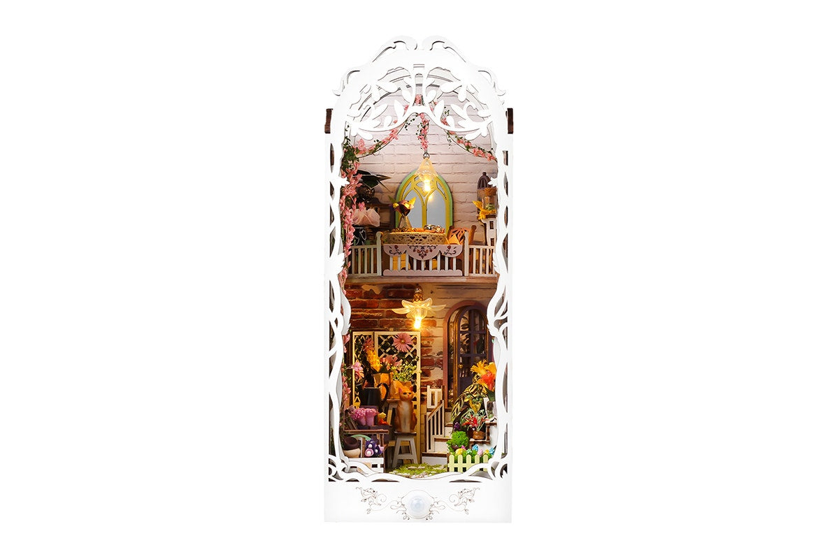 Escape into a miniature world with this DIY Miniature Garden House Book Nook. Filled with glowing lights, lush plants and homely details, this enchanting wooden kit transforms your bookshelf into a cosy secret garden scene.