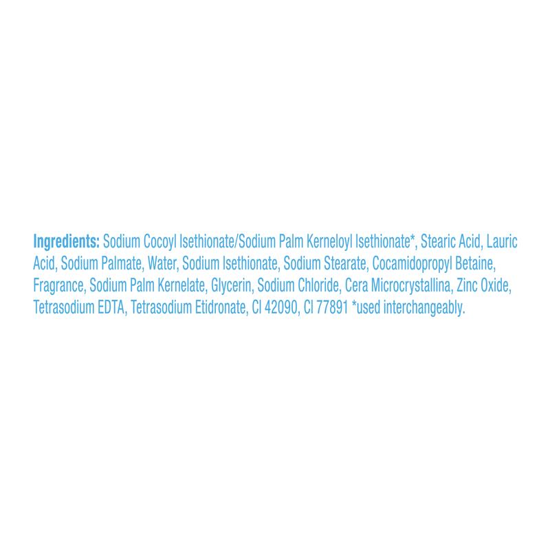 Sodium Cocoyl Isethionate/Sodium Palm Kerneloyl Isethionate*, Stearic Acid, Lauric Acid, Sodium Palmate, Water, Sodium Isethionate, Sodium Stearate, Cocamidopropyl Betaine, Fragrance, Sodium Palm Kernelate, Glycerin, Sodium Chloride, Cera Microcrystallina, Zinc Oxide, Tetrasodium EDTA, Tetrasodium Etidronate, CI 42090, CI 77891