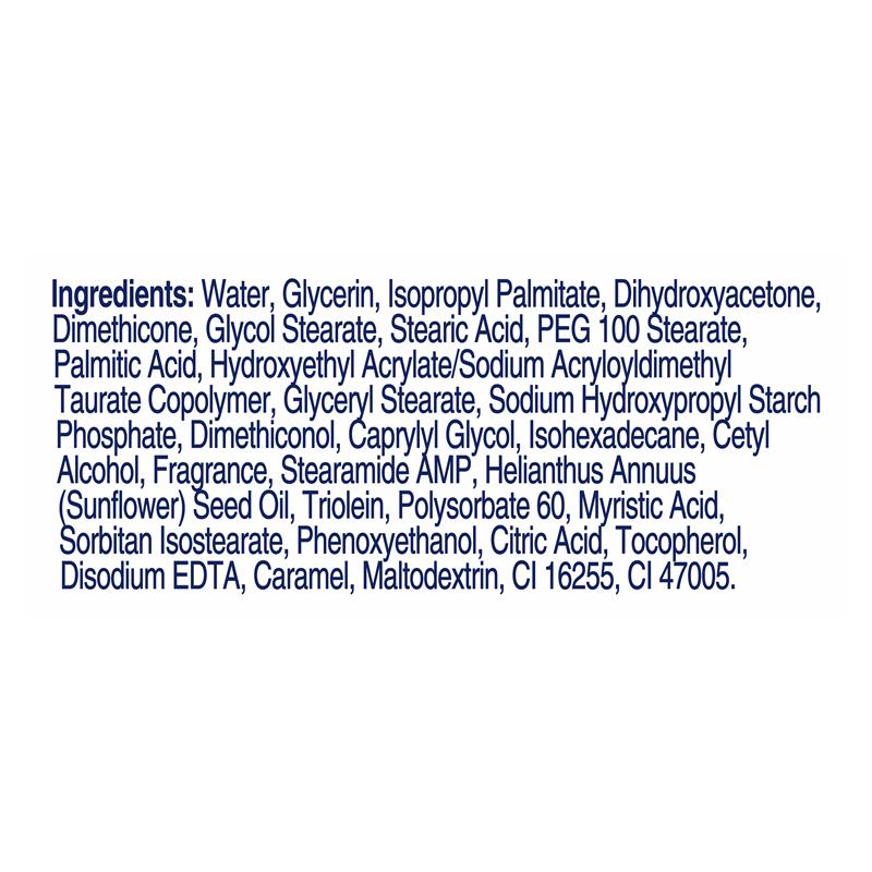 Water, Glycerin, Dihydroxyacetone, Isopropyl Palmitate, Dimethicone, and more.