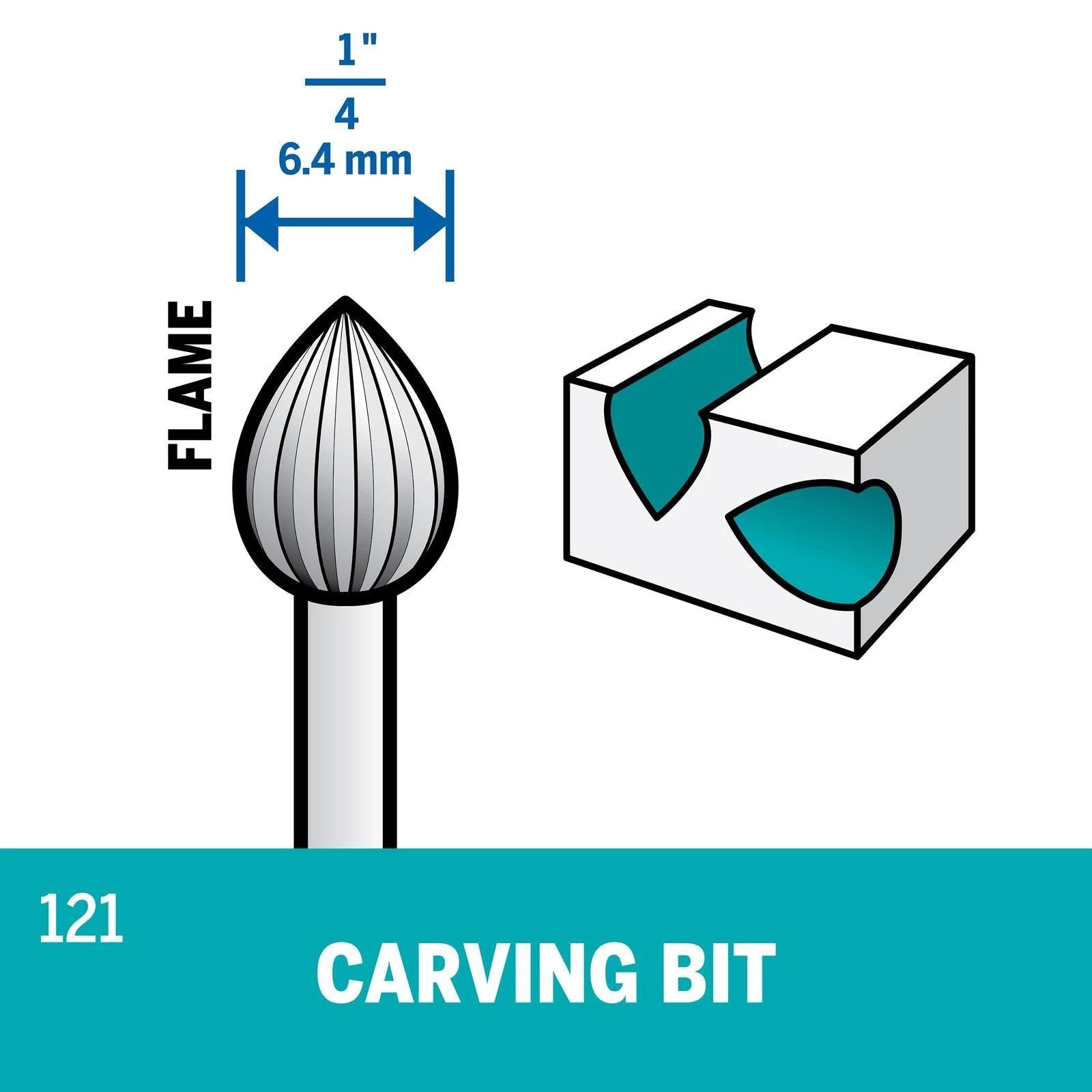 Enhance your crafting and DIY projects with the Dremel 6.4mm (121) High Speed Cutter. Designed for detailed carving, engraving, and shaping, this versatile tool is perfect for working on softer materials like wood, plastic, and soft metals. Its flame-shaped design allows for precise concave cuts, V-bottom slots, and grooves, making it an essential addition to your rotary tool collection.