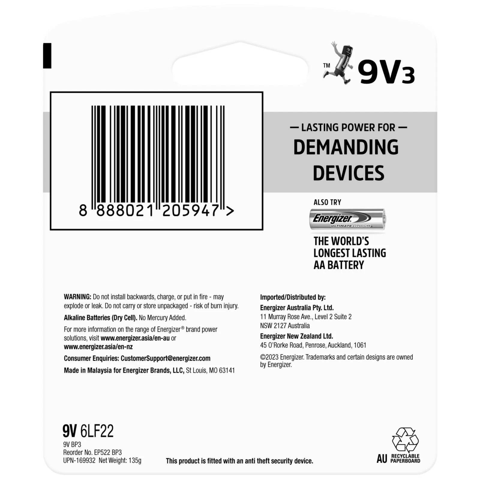 1 x Energizer 9V Max Plus Batteries - 3 Pack
