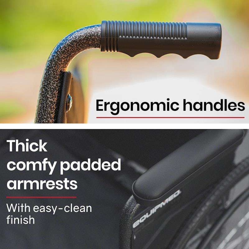 The Equipmed wheelchair is perfect for those seeking comfort and mobility. With its user-friendly design, it ensures a pleasant experience for both the user and their helpers.