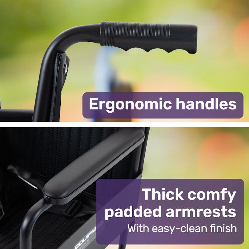 Choose the Equipmed Transit Manual Wheelchair for a dependable and comfortable mobility solution, perfect for any outing!