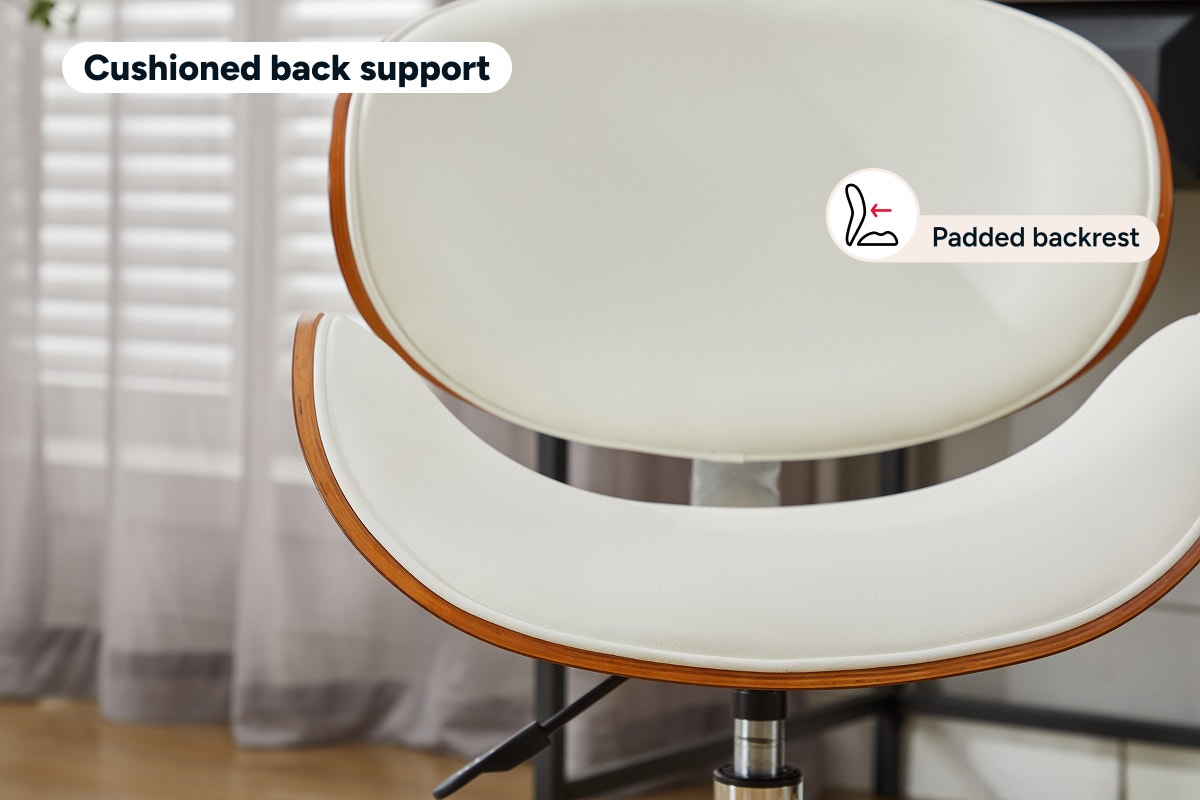 The padded PU seat and backrest provide gentle, easy-clean comfort suitable for long hours at your desk. Its ergonomic shape supports natural posture while maintaining a sleek, contemporary look.