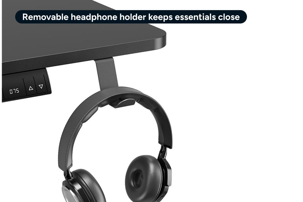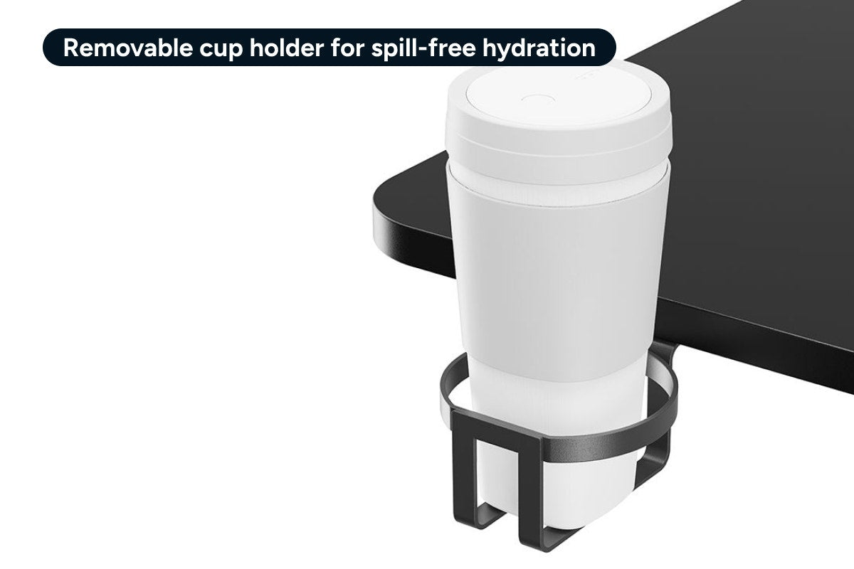 Stay focused and tidy with integrated under-desk accessories like headphone and cup holders that help you avoid spills and desk clutter. Combined with a cable management tray, your work surface stays clear, professional and ready for whatever the day throws at it.