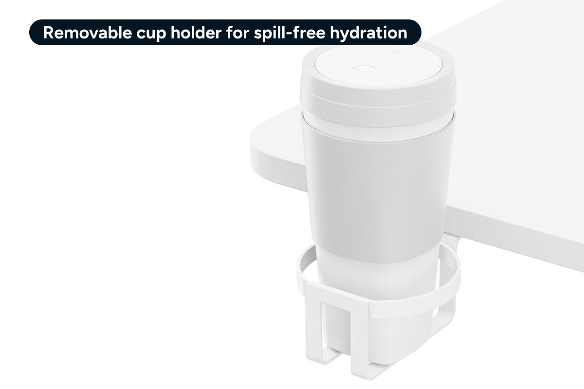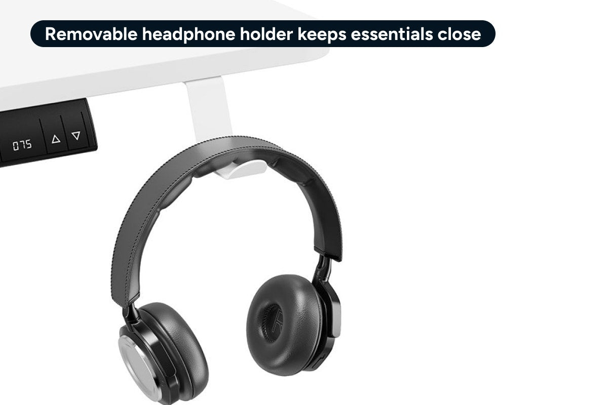 Stay focused and tidy with integrated under-desk accessories like headphone and cup holders that help you avoid spills and desk clutter. Combined with a cable management tray, your work surface stays clear, professional and ready for whatever the day throws at it.