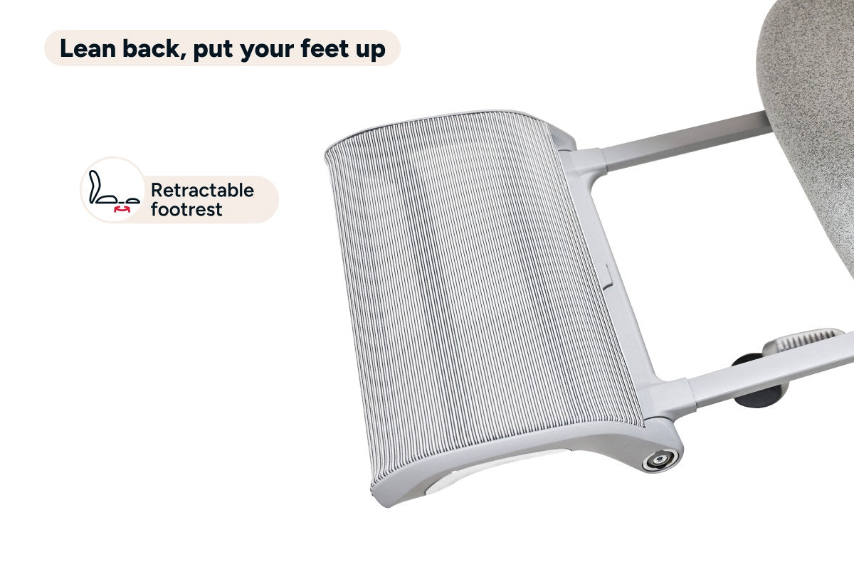 The integrated footrest slides out smoothly to elevate your legs and improve circulation, perfect for decompressing between deep work sessions or making long days feel lighter.