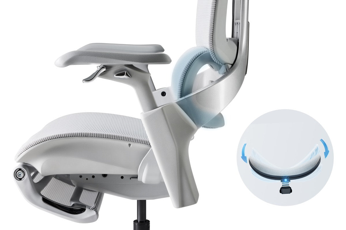 Unlike static backrests, the Ergolux Elite’s adaptive lumbar system flexes with your spine—responding instantly whether you’re upright or reclining. This dynamic support reduces strain, promotes healthy posture and keeps you feeling energised, even after hours at your desk.