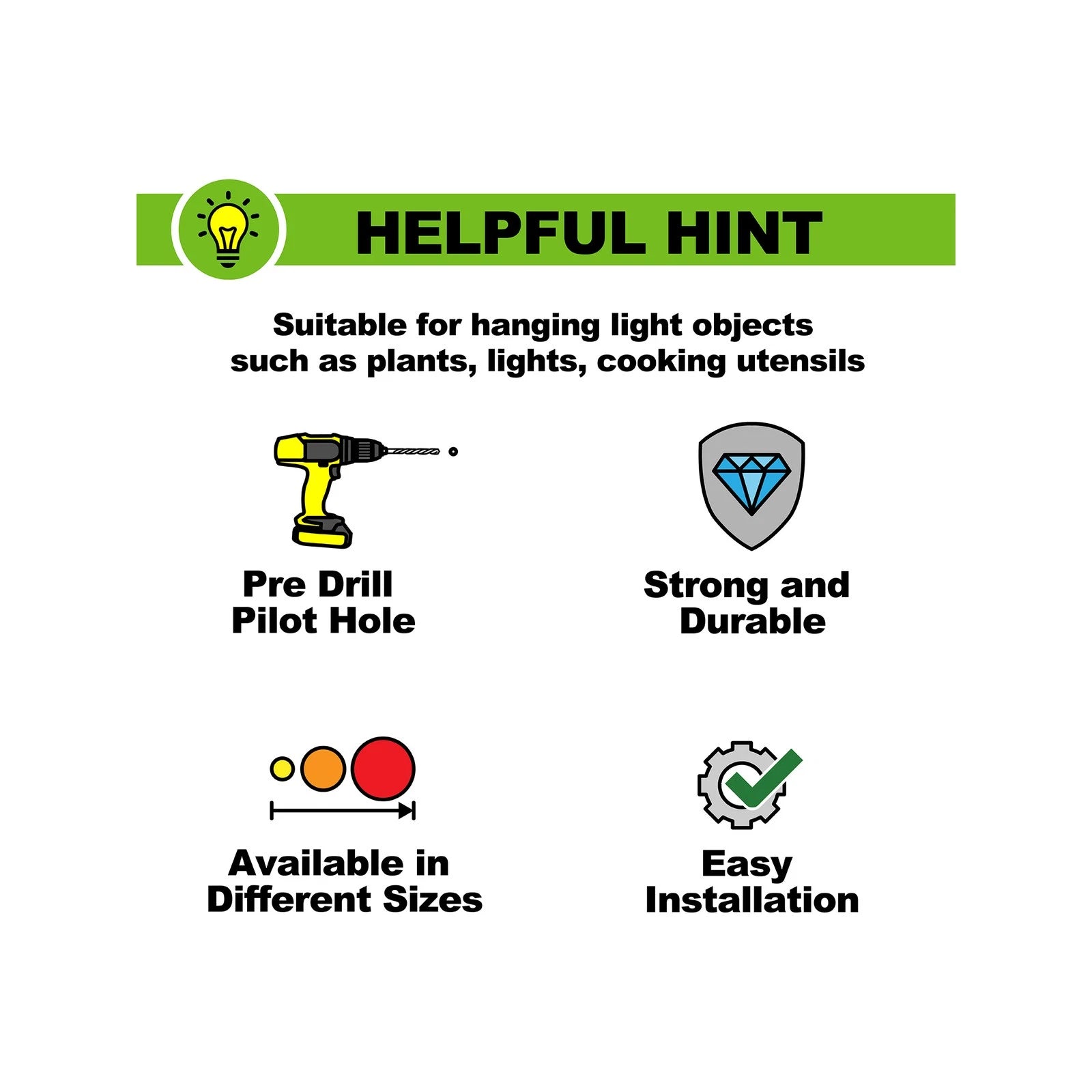 Whether for home, office, or outdoor projects, these durable cup hooks provide a reliable and straightforward hanging solution. Easy to install and built to last, the Everhang 12mm White PVC Cup Hooks are a practical addition to your toolkit.