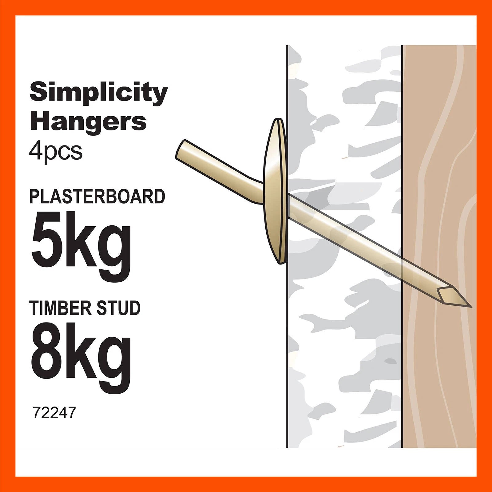 Securely hang your artwork, photos, or decorative items with the Everhang 8kg Brass Plated Simplicity Hangers. Designed for easy installation and a clean look, these versatile hangers are perfect for various wall types, including studded plasterboard. Their innovative design combines a nail and hanger for quick setup and removal, making your decorating process effortless.